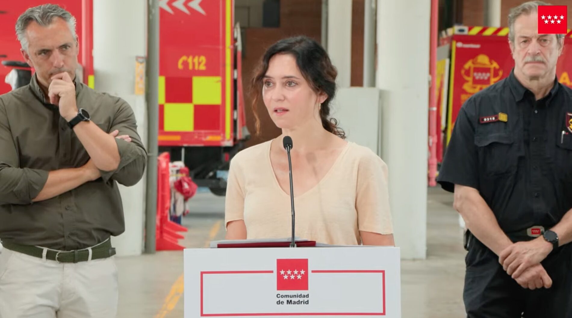 La presidenta de la Comunidad de Madrid comparece ante los medios de comunicación en el Parque Central de Bomberos de Las Rozas | Señal de TV de Comunidad de Madrid