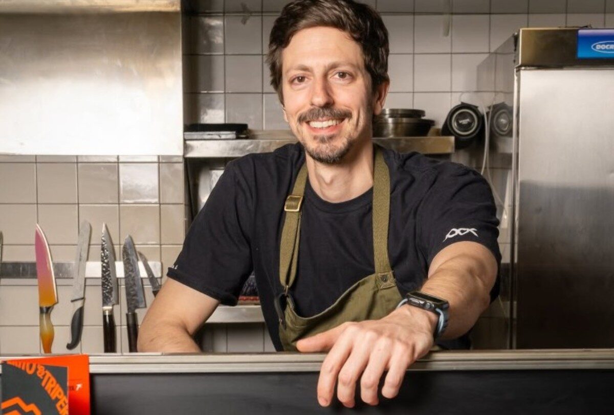 Alberto Fernández habla con el chef Roberto Martínez Foronda de El Triperito y Tripea, restaurantes en mercados de toda la vida.