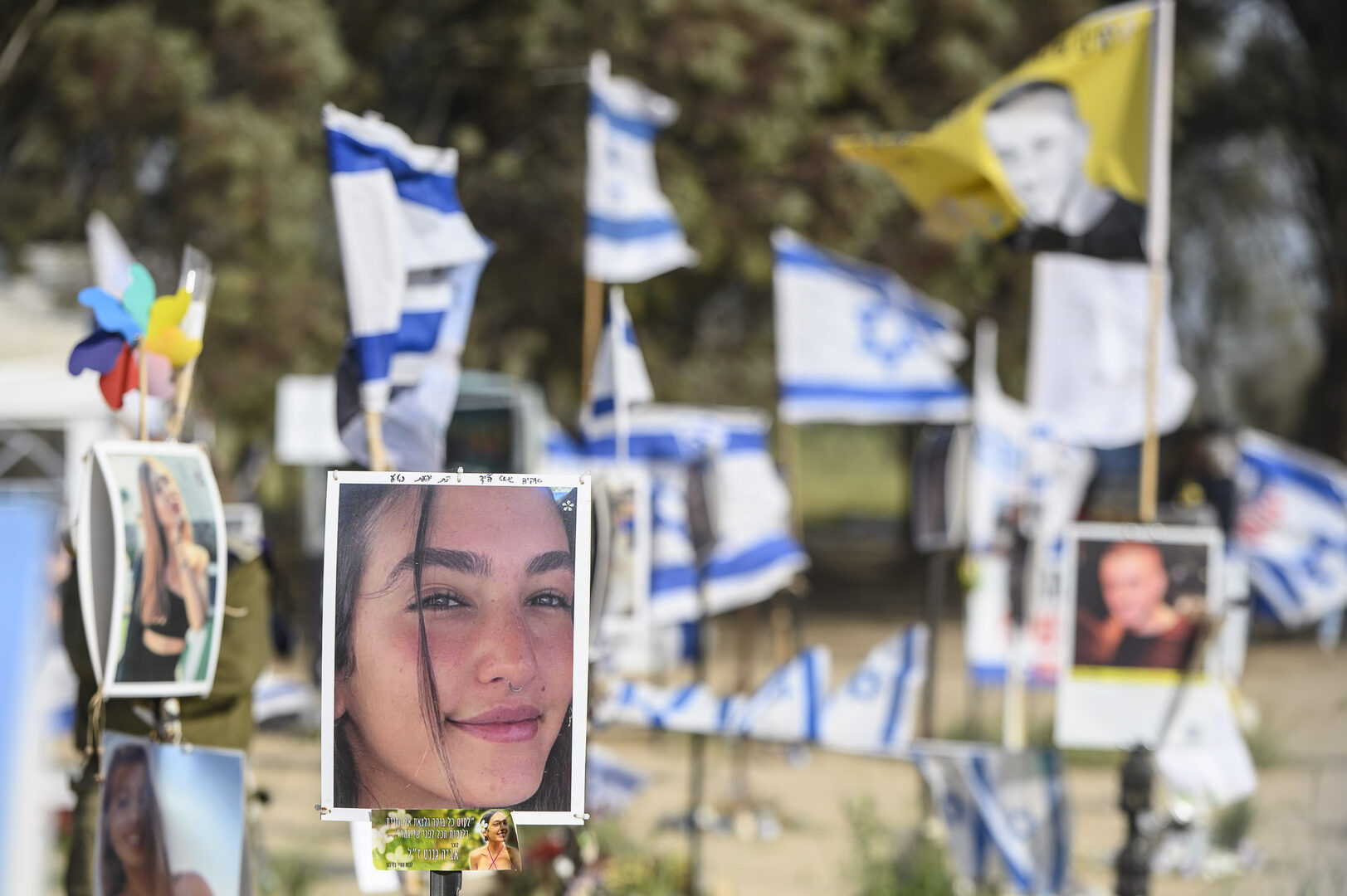 Banderas y fotografías en el lugar en el que se celebró el Festival Nova, para recordar a los asesinados allí el 7 de octubre. | C.Jordá