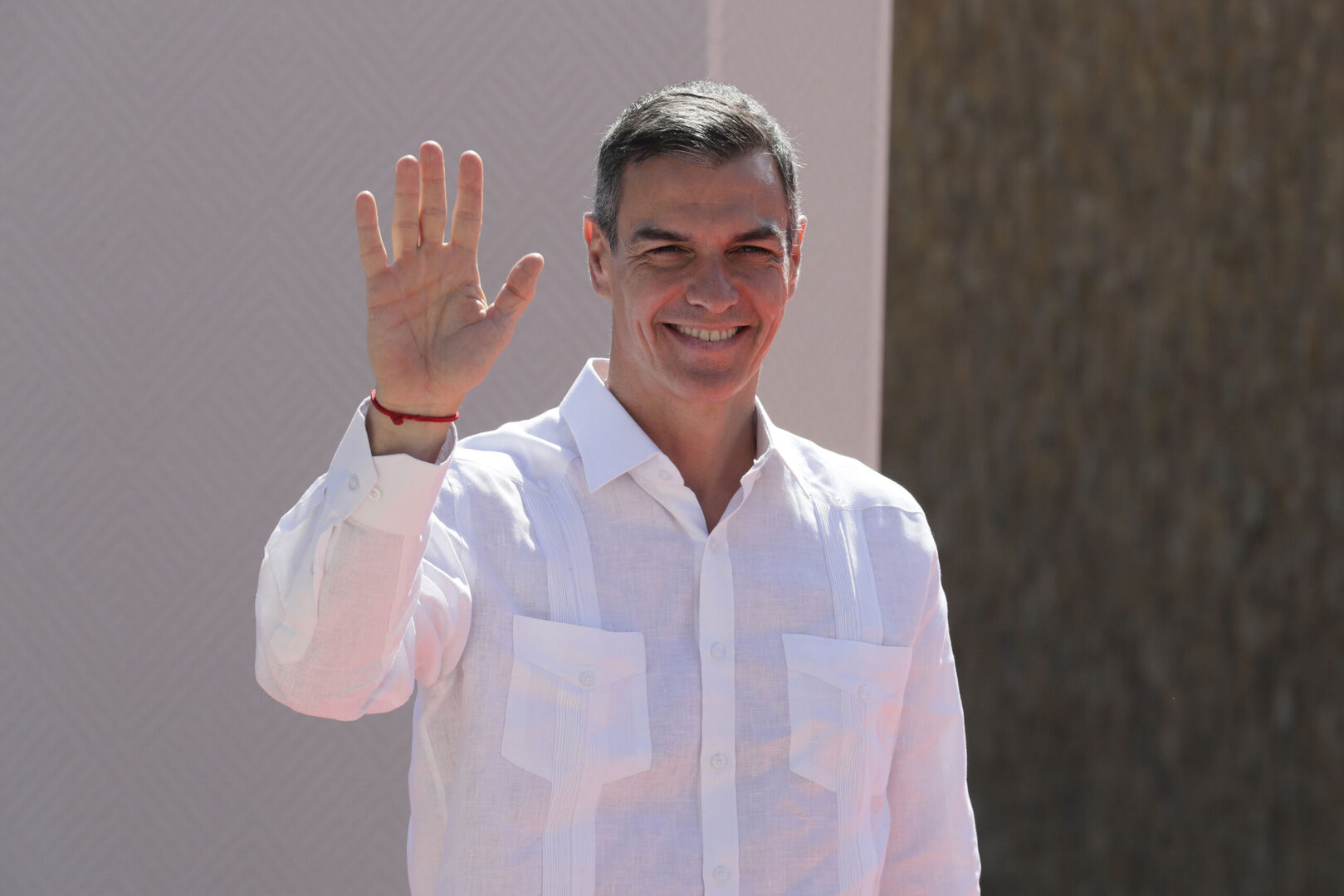 El presidente del Gobierno de España, Pedro Sánchez, llega a la ceremonia de apertura de la IV Cumbre CELAC-UE este domingo, en Santa Marta (Colombia). | EFE/ Carlos Ortega