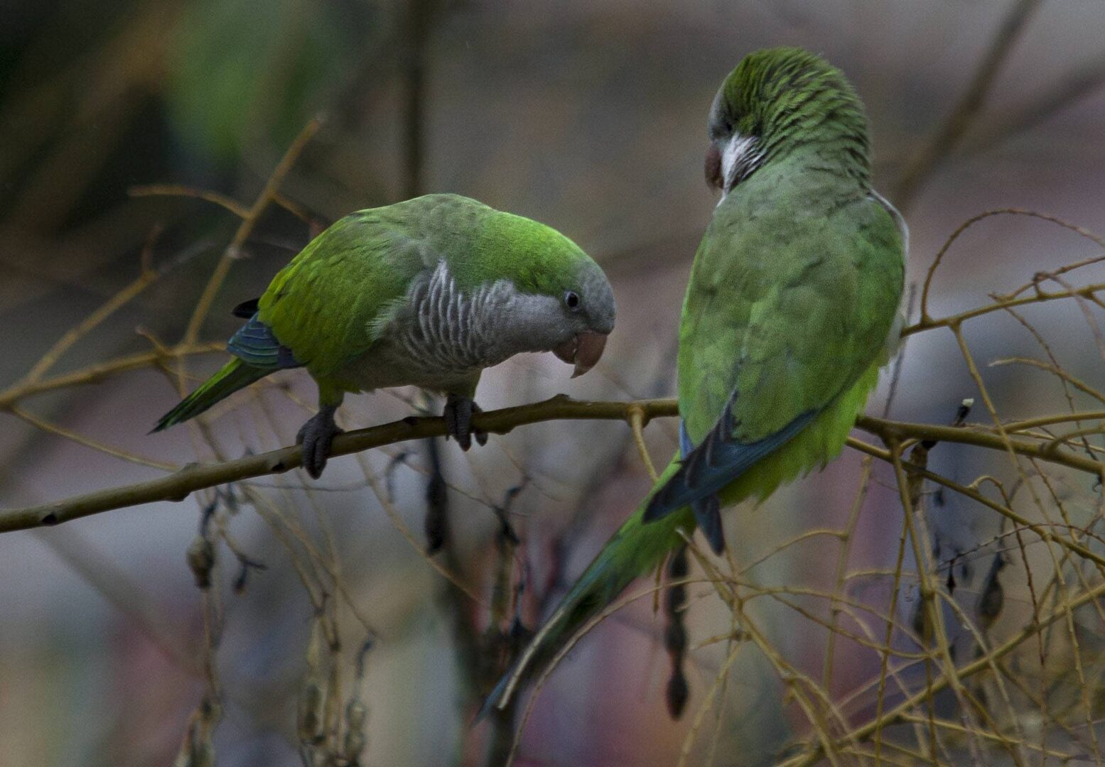 The monk parakeet, Argentine parakeet or quaker parrot (Myiopsitta monachus) in a tree of a street in Madrid, it is a typical species of South America and subtropical climate which was introduced in Spain as a pet and has grown and adapted wild in cities. It has been declared invasive exotic species by the government. Cotorra monje, cotorra argentina o cotorrita verdigris ( Myiopsitta monachus ) en un arbol de una calle de Madrid, se trata de una especie tipica de sudamerica que fue introducida en España como mascota y que se ha multiplicado y adaptado de manera silvestre en las ciudades. Ha sido declarada especie exotica invasora por el gobierno. | Cordon Press
