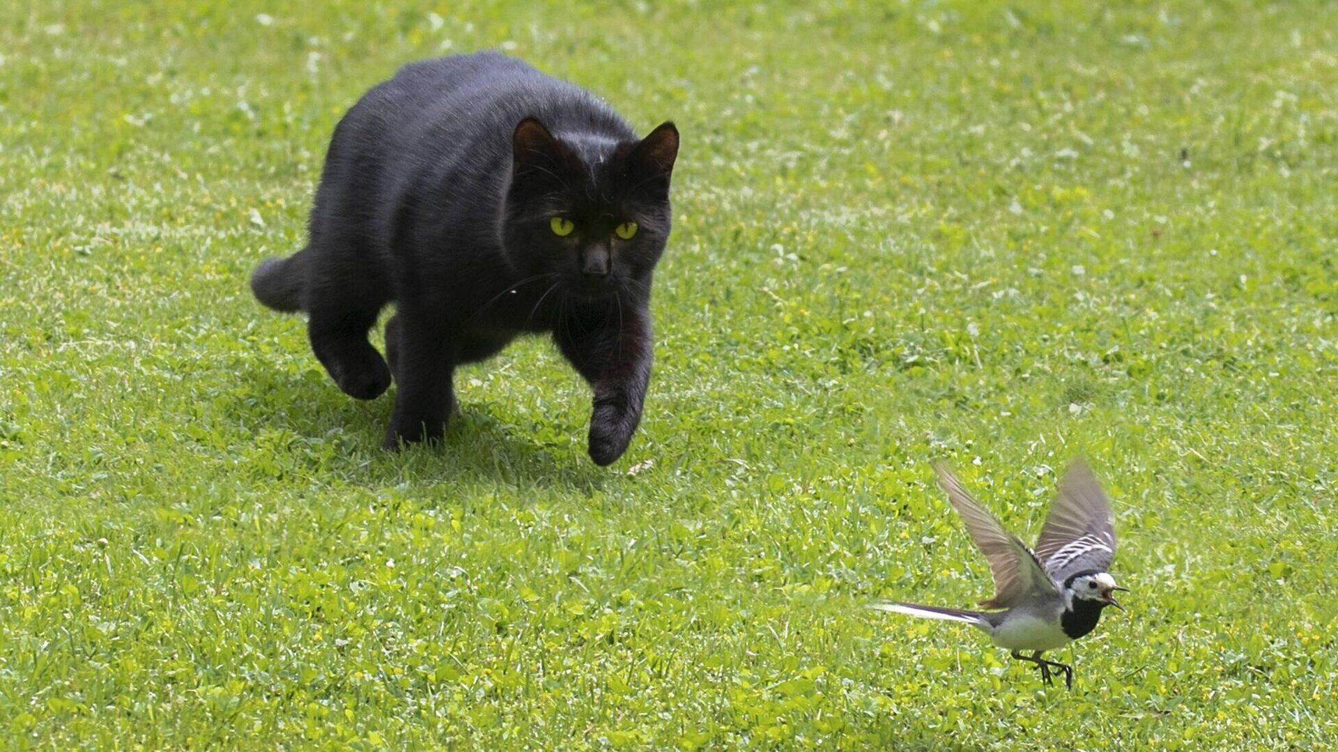 Un gato doméstico intenta cazar una lavandera. | Cordon Press