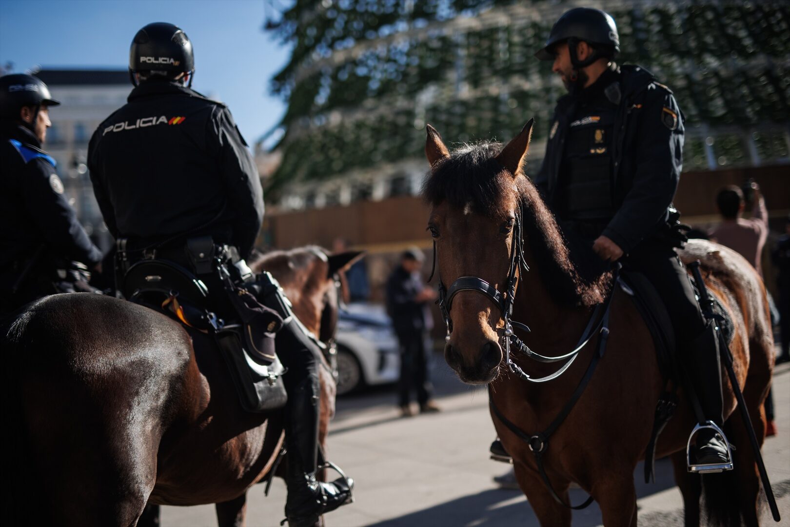 Varios agentes de policía a caballo durante la Navidad en la Puerta del Sol | Europa Press