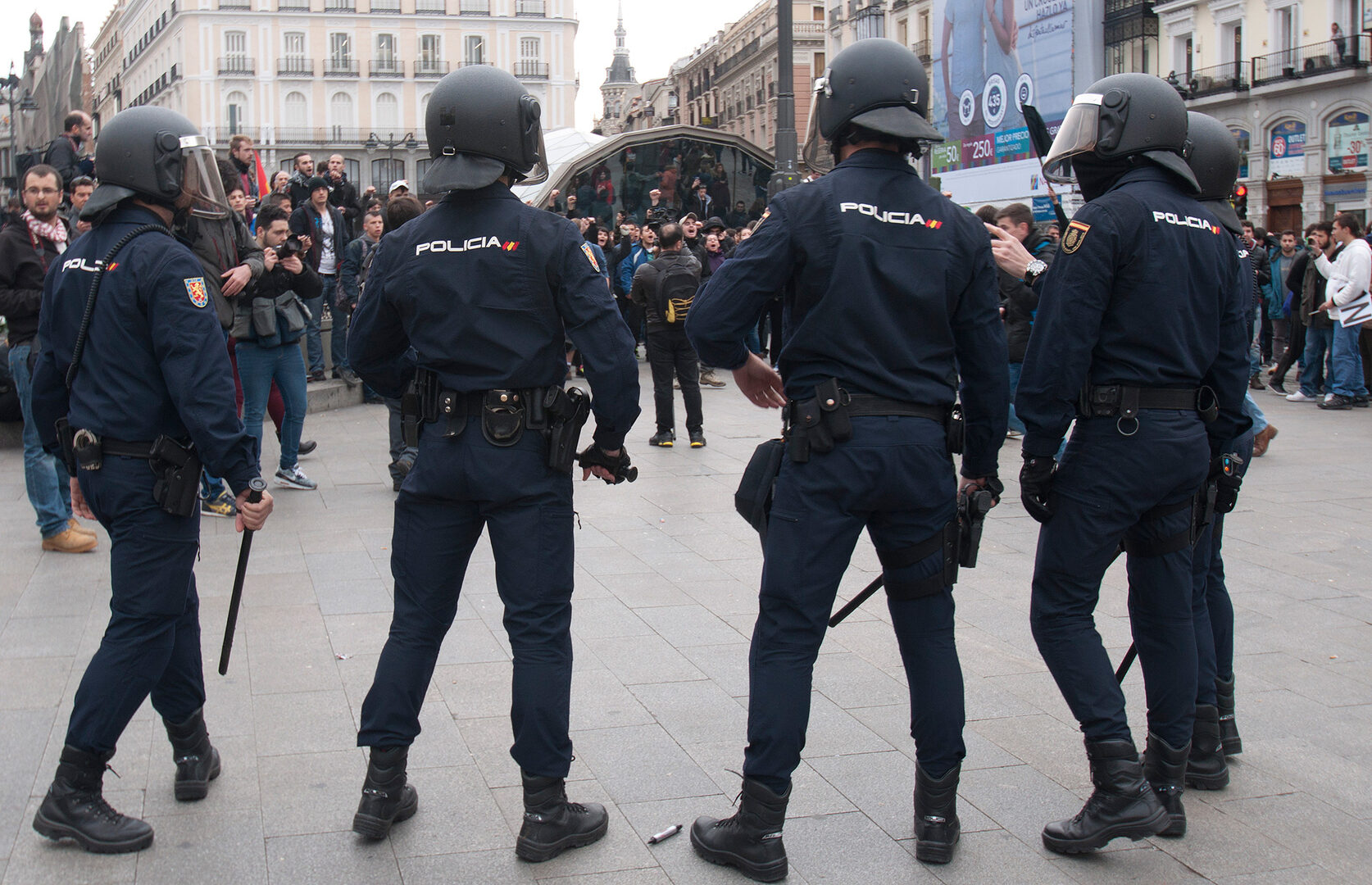 Un grupo de antidisturbios de la Policía Nacional vigila a los estudiantes más radicales. | David Alonso Rincón.