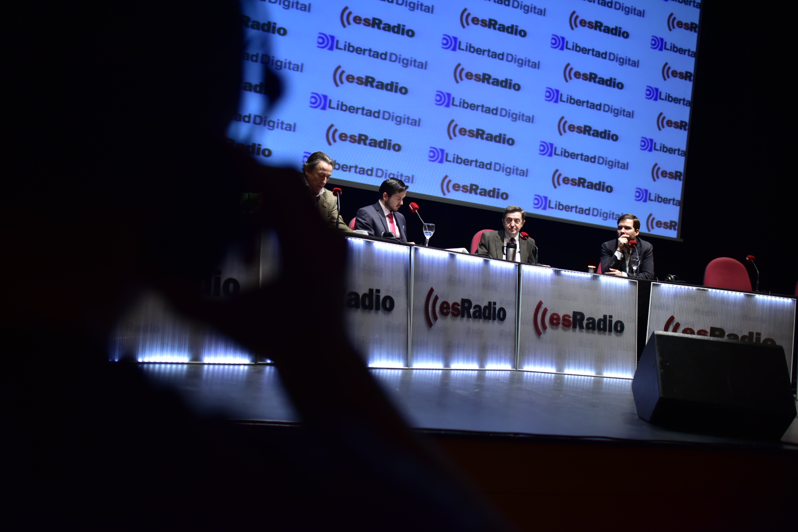 Federico Jiménez Losantos, junto a Dieter Brandau y Miguel Ángel Pérez en uno de los momentos de la tertulia