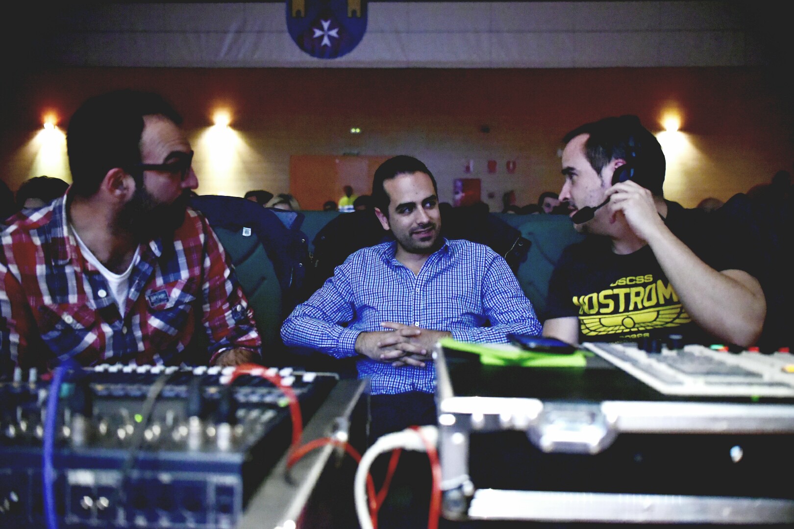 José Ramón de las Peñas, técnico de esRadio, con dos compañeros durante un momento del pgrograma