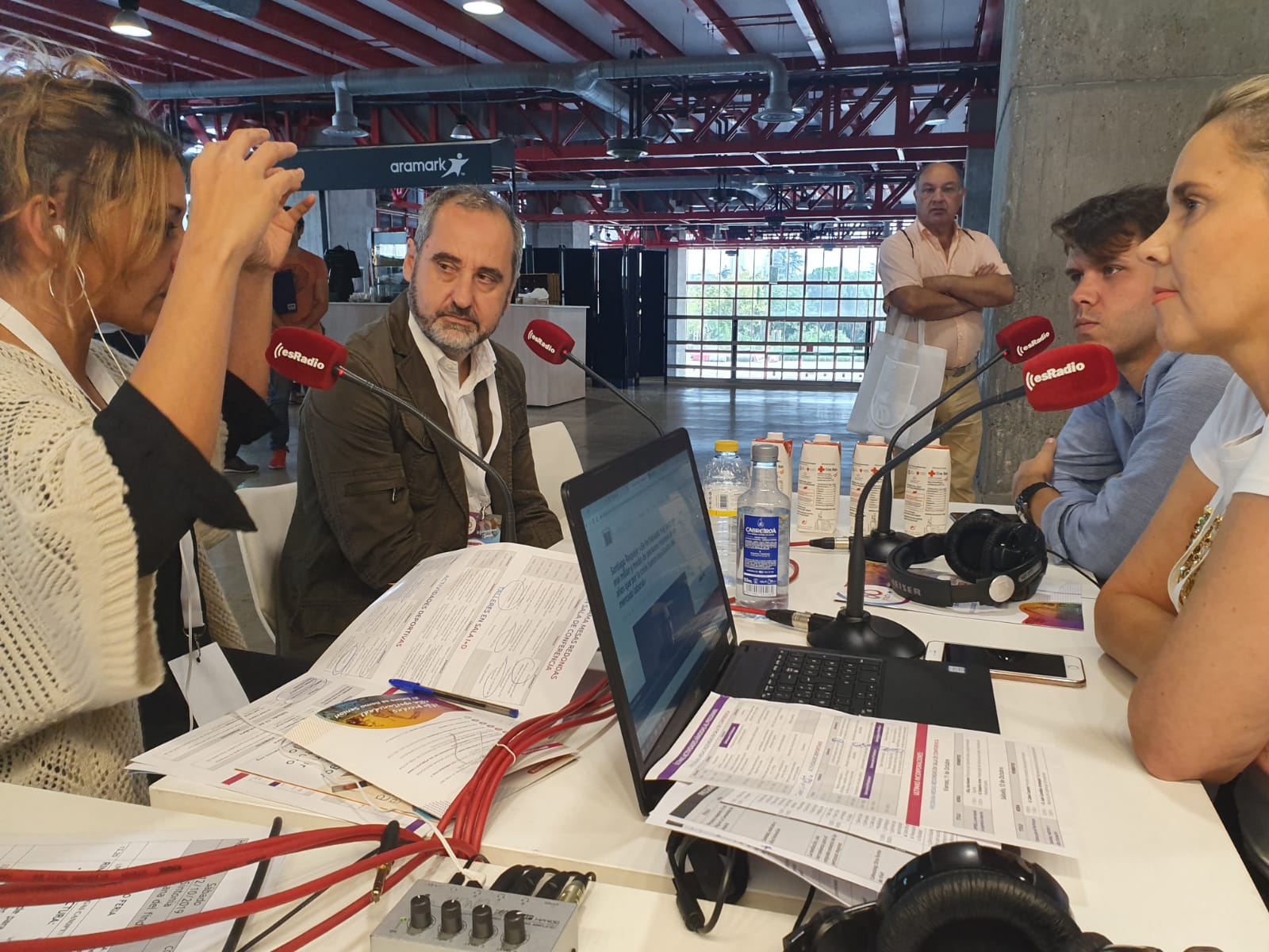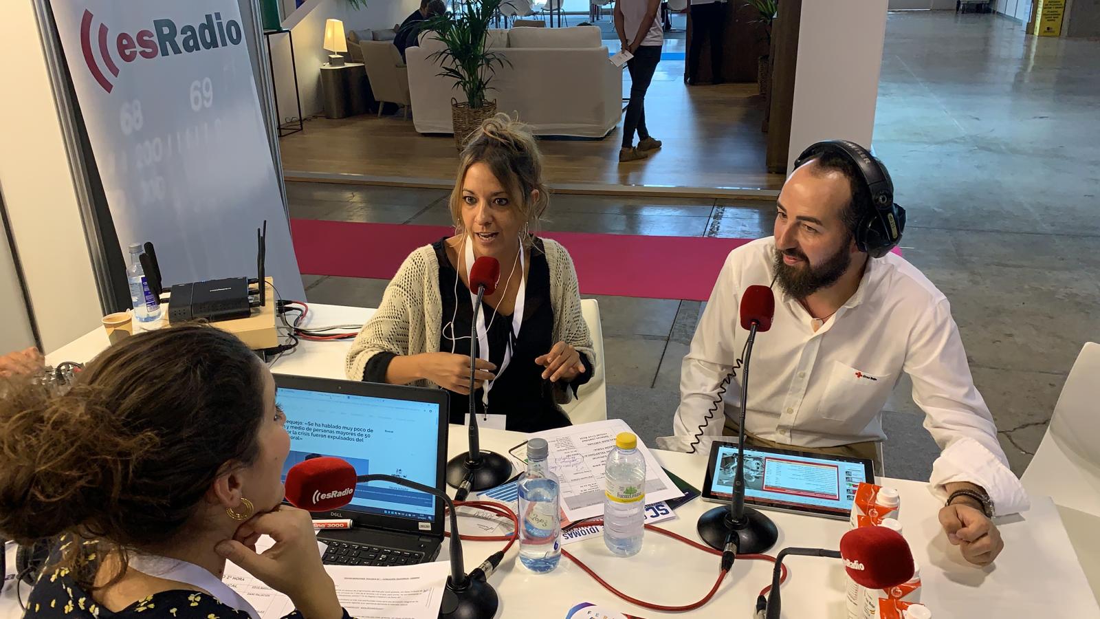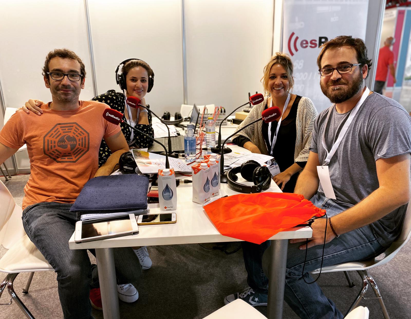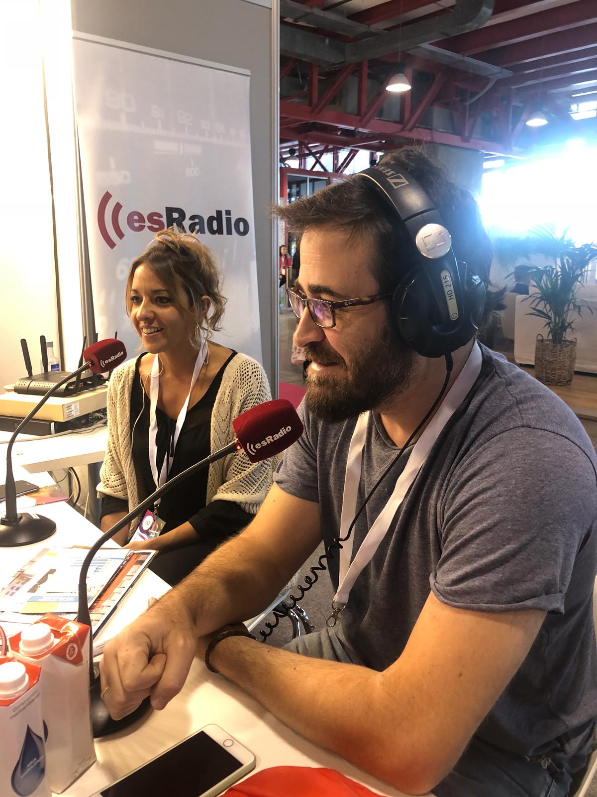 Secun de la Rosa y Angy antes de empezar el programa del domingo en el stand de esRadio