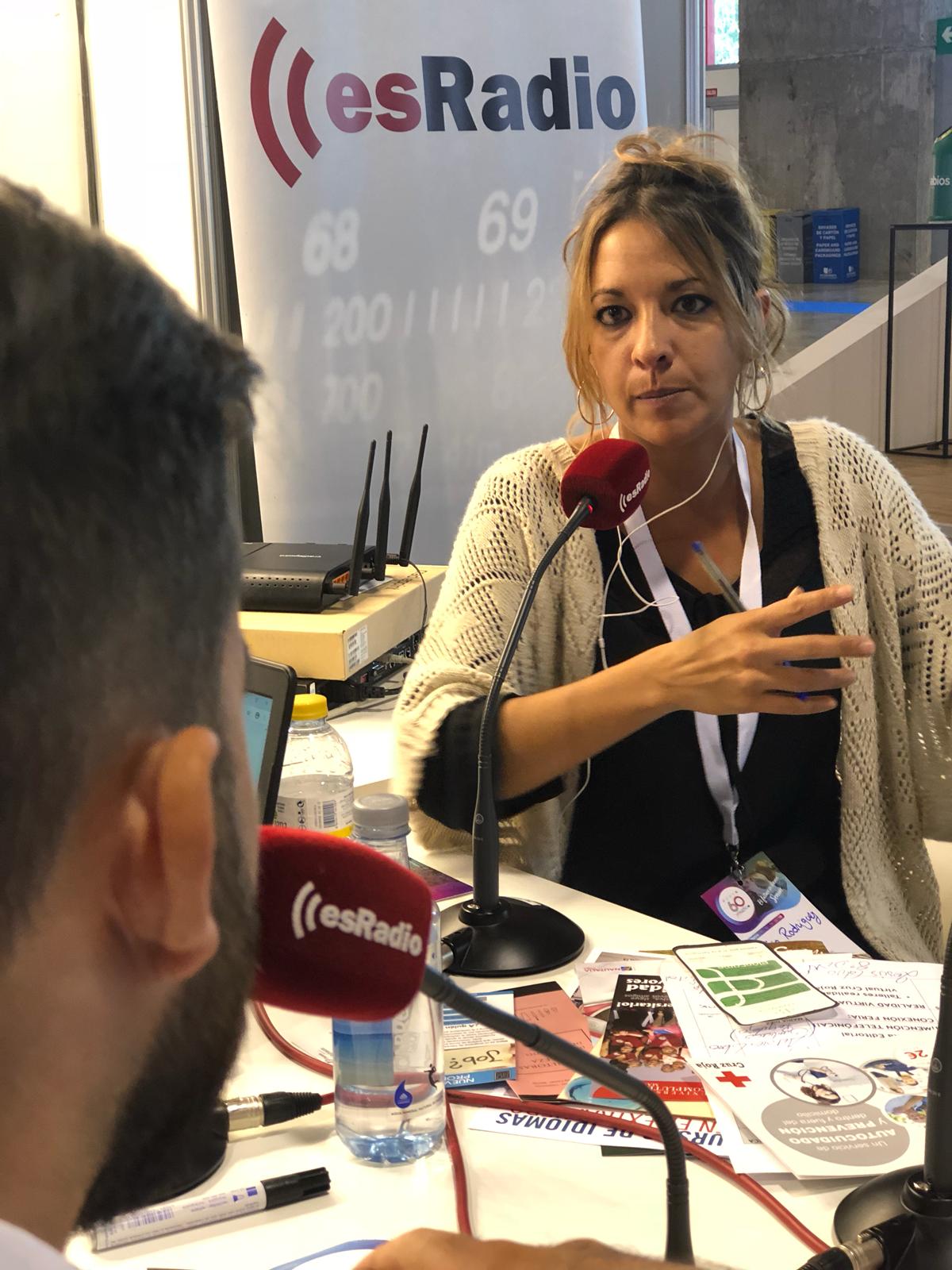 Elia Rodríguez en el stand de esRadio en el Pabellón de Cristal de la Casa de Campo