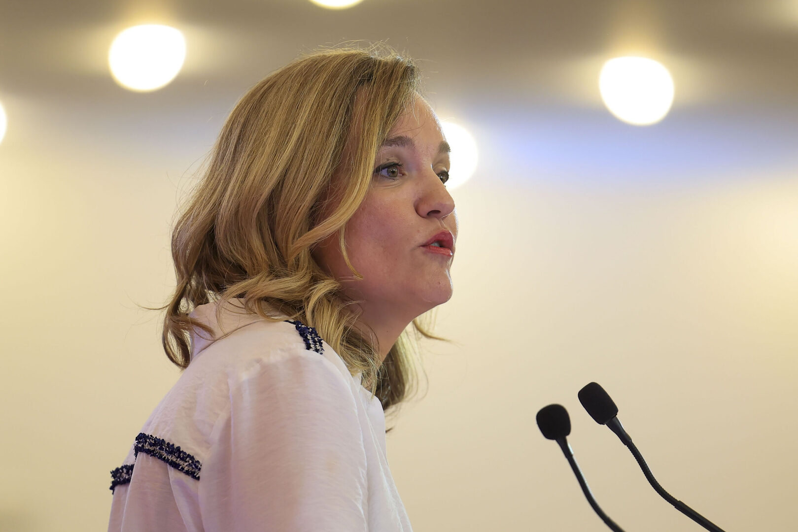 La candidata del PSOE a la Presidencia de Aragón, Pilar Alegría, interviene durante un acto de campaña celebrado en Zaragoza este viernes. EFE/Javier Cebollada | EFE