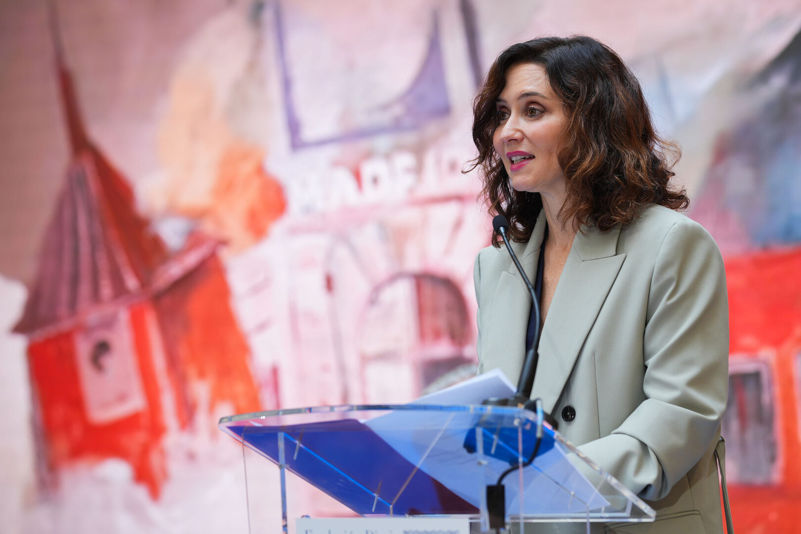 La presidenta de la Comunidad de Madrid, Isabel Díaz Ayuso, asiste al acto de entrega del XX Premio Periodismo Diario Madrid al escritor Andrés Trapiello, este lunes en Madrid. | EFE