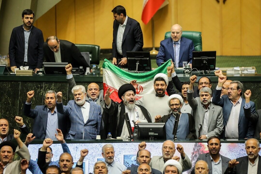 Miembros del legislativo iraní con el puño en alto tras el ataque a Israel con drones y misiles balísticos | Europa Press