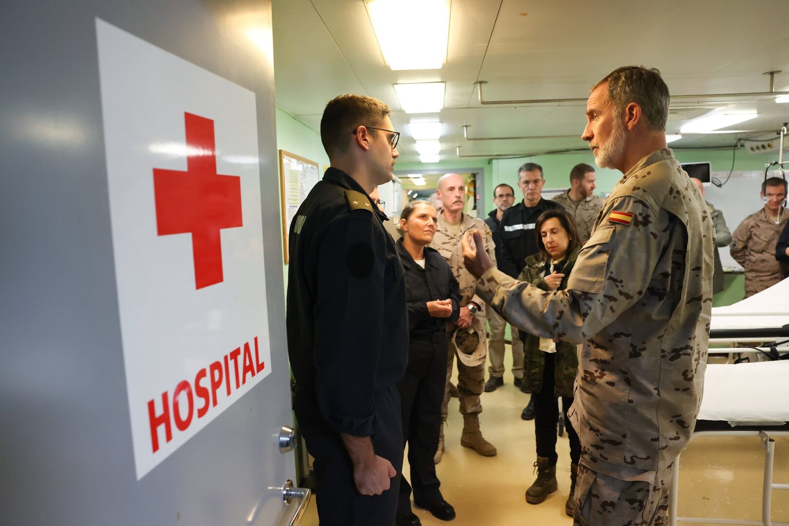 El Rey, acompañado por la ministra de Defensa, ha visita el área médica del buque Galicia. | Casa Real