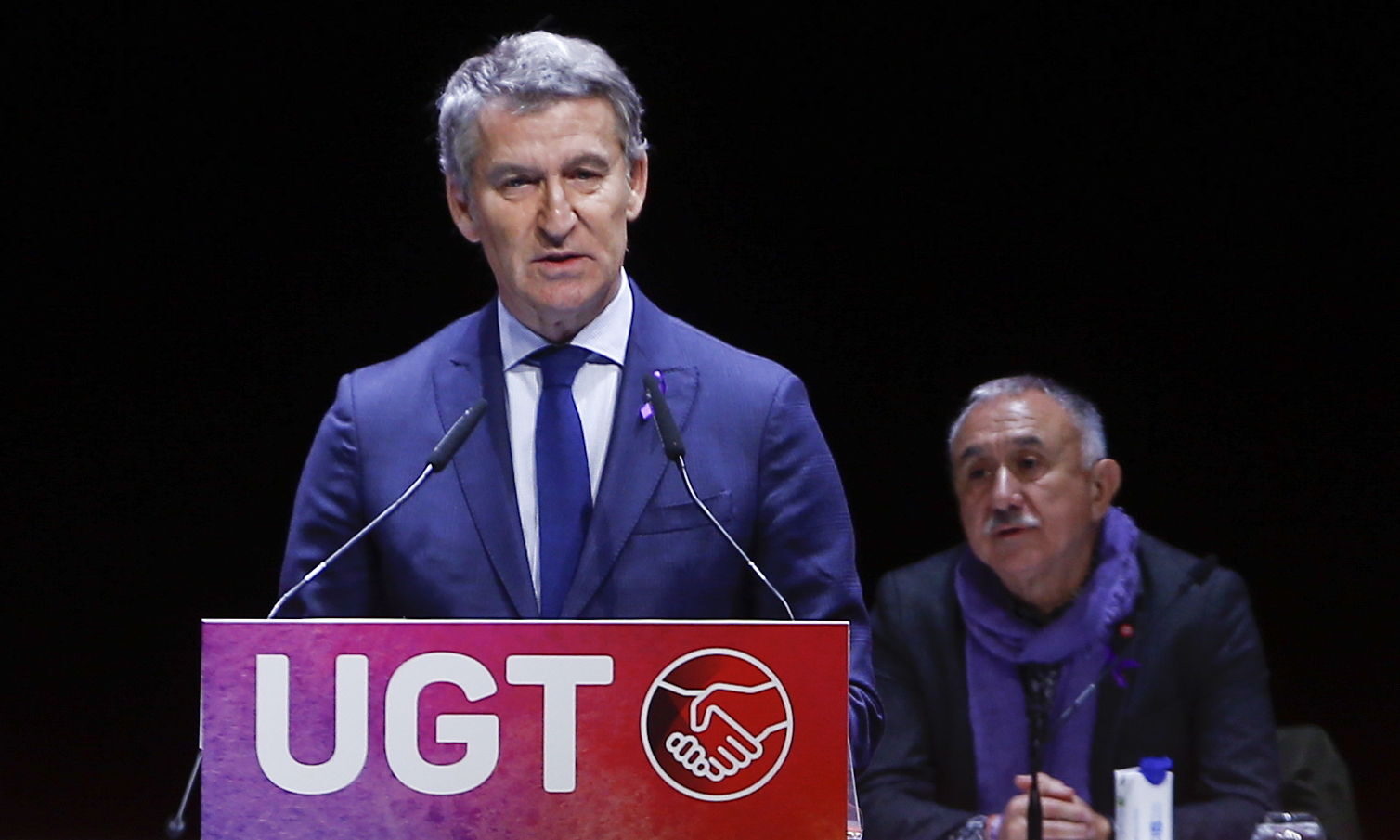 El presidente del PP, Alberto Núñez Feijóo, durante su participación en la inauguración del 44 Congreso Confederal de UGT. EFE/ Quique García | EFE