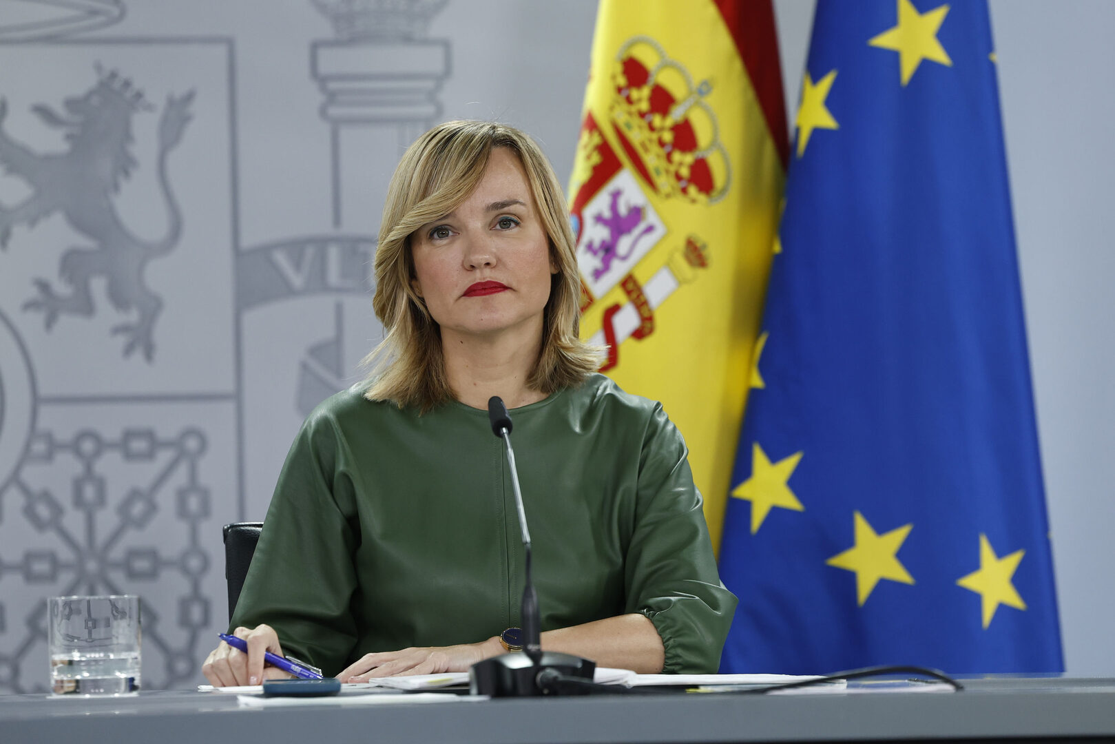 MADRID, 28/11/2024.- La ministra de Educación, Formación Profesional y Deportes y portavoz del Gobierno, Pilar Alegría, durante la rueda de prensa posterior a la reunión del Consejo de Ministros que este jueves, aprueba un tercer paquete de ayudas a afectados por la dana de Valencia por valor de 2.274 millones de euros, que se suman a los 14.373 millones ya movilizados. EFE/ Chema Moya | EFE