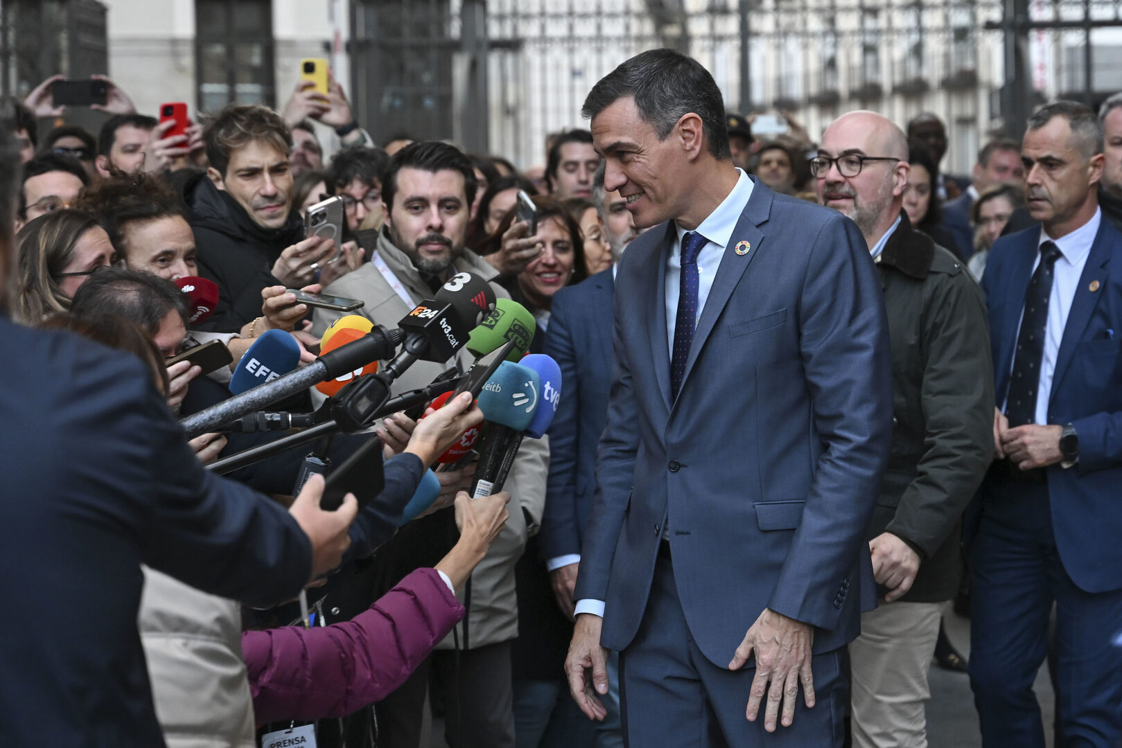 El presidente del Gobierno, Pedro Sánchez, realiza declaraciones tras el pleno celebrado este jueves en el Congreso de Los Diputados.- EFE/ Fernando Villar | EFE
