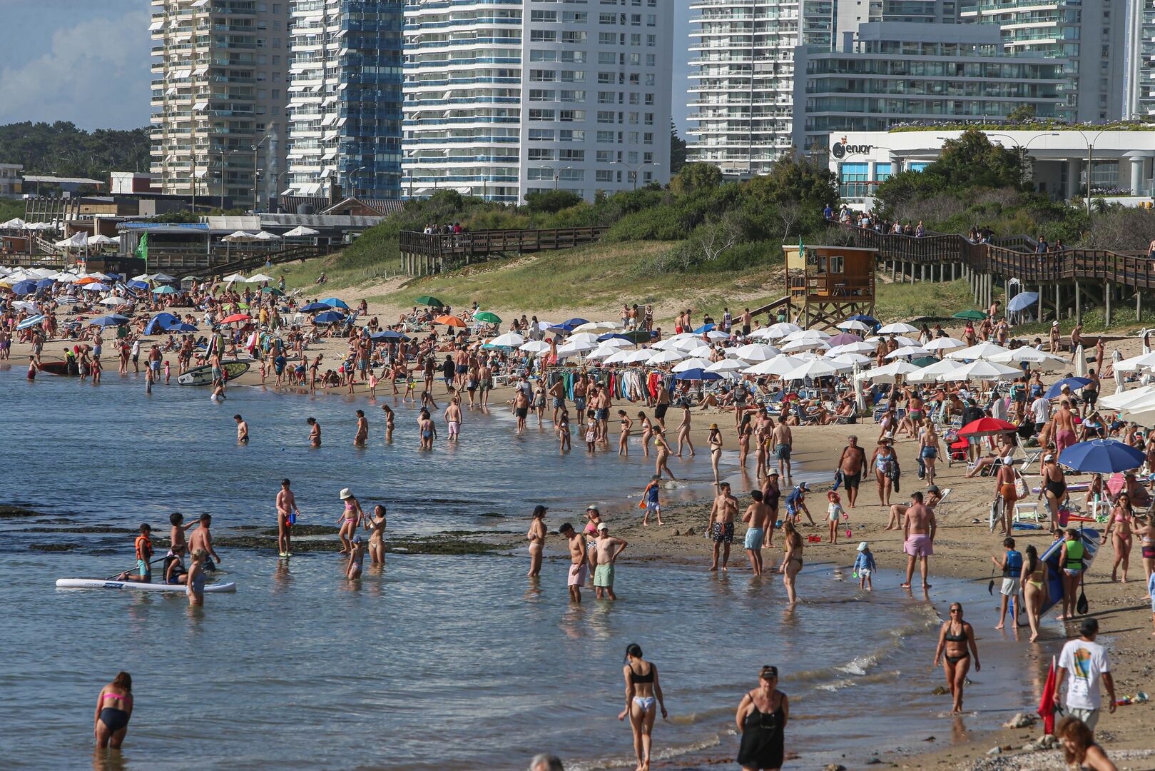 AME7694. PUNTA DEL ESTE (URUGUAY), 10/12/2024.- Fotografía de archivo fechada el 05 de enero de 2024 que muestra personas caminando en la Playa Mansa en Punta del Este (Uruguay). La población de Uruguay creció un 2,5 % respecto a 2011 y alcanzó un total de 3.499.451 habitantes, de los cuales un 52,8 % son mujeres y 46,5 % varones, según los resultados finales del último censo del país, llevado a cabo en 2023. EFE/ Gastón Britos /ARCHIVO | EFE