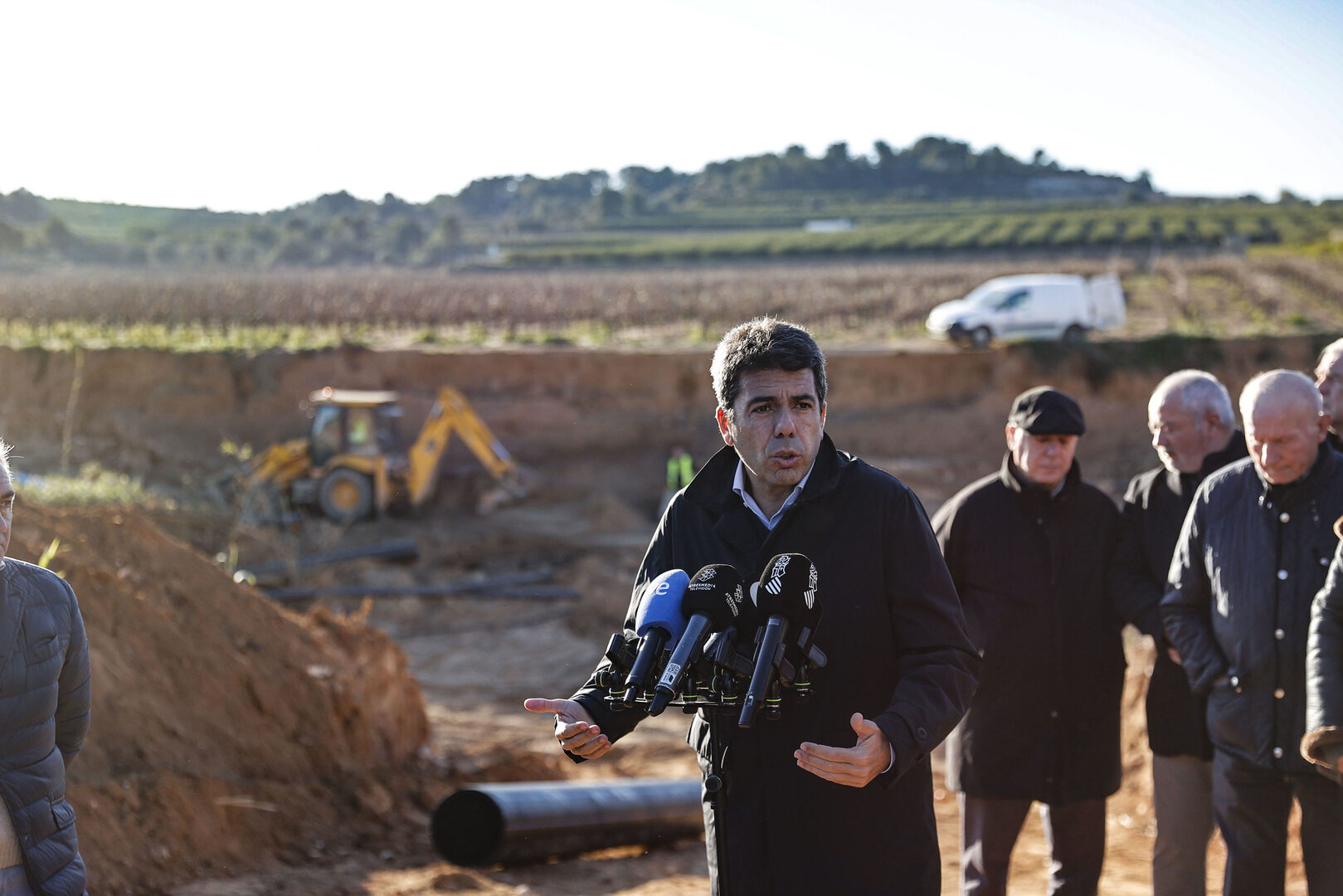 El presidente valenciano, Carlos Mazón, atiende a los medios de comunicación tras visitar unas obras de reconstrucción por la DANA. | EFE