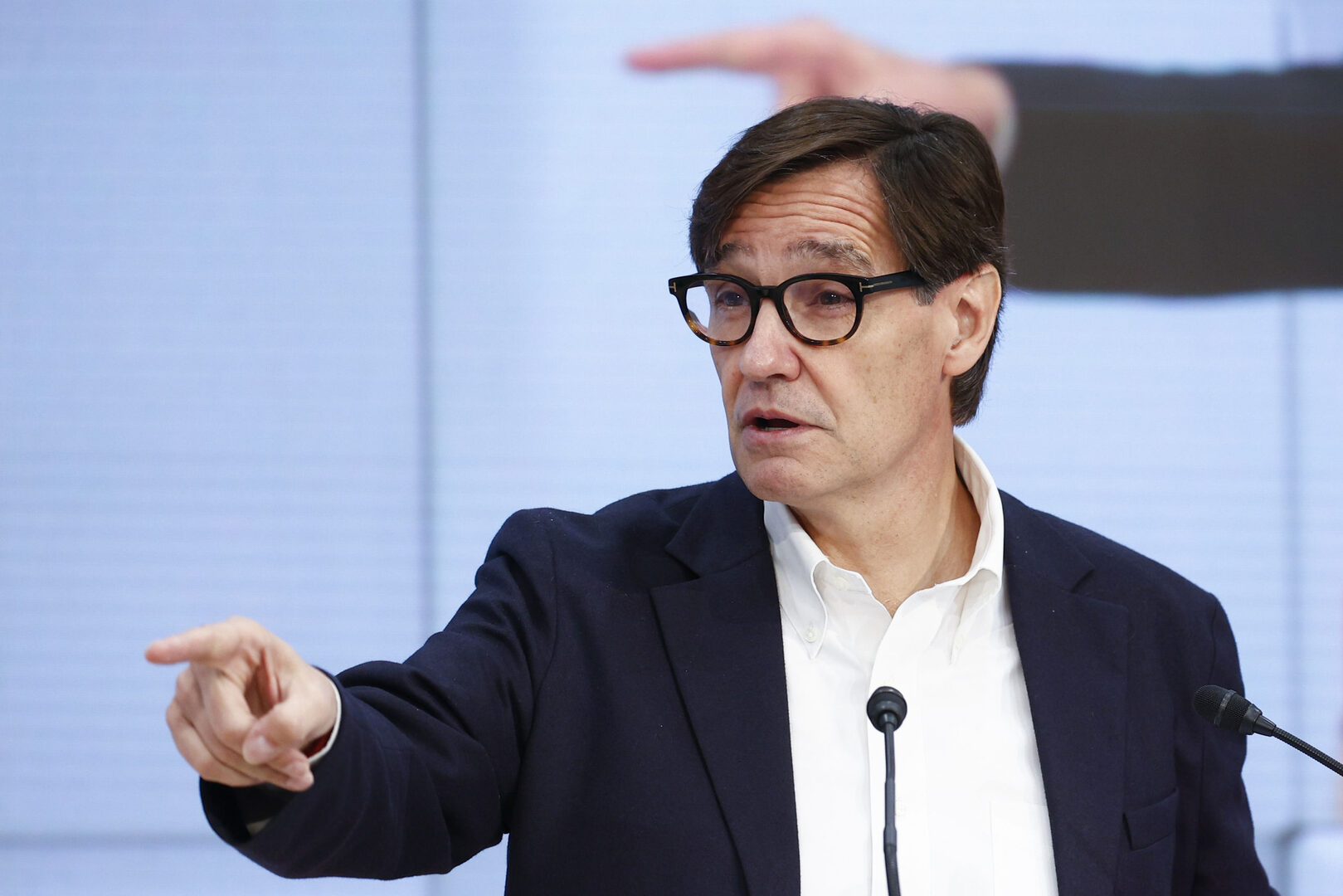 BARCELONA (ESPAÑA), 28/09/2024.- El primer secretario del PSC y presidente de la Generalitat, Salvador Illa, interviene este sábado en la reunión del Consell Nacional del PSC. EFE/ Quique García | LD/Agencias