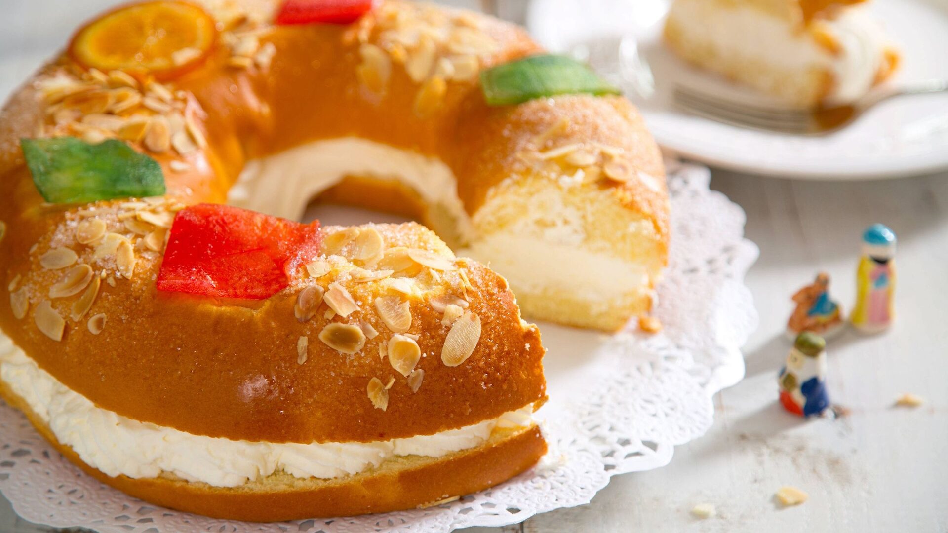 K8HDM8 "Roscon de reyes" , Spanish typical dessert of Epiphany, with cream filling | Cordon Press
