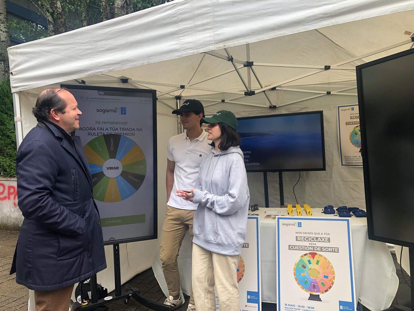 El presidente de Sogama, Javier Domínguez, ha acudido al puesto de la empresa, donde se realiza un test interactivo.
