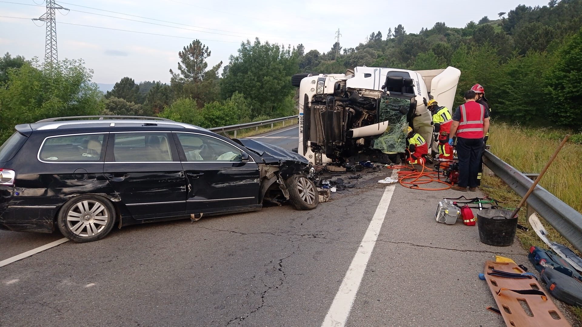 Las dos víctimas mortales son el conductor del camión y la mujer que manejaba el turismo, según ha confirmado la Guardia Civil. Además, hay otros tres heridos que viajaban en otro coche que impactó contra los vehículos accidentados.