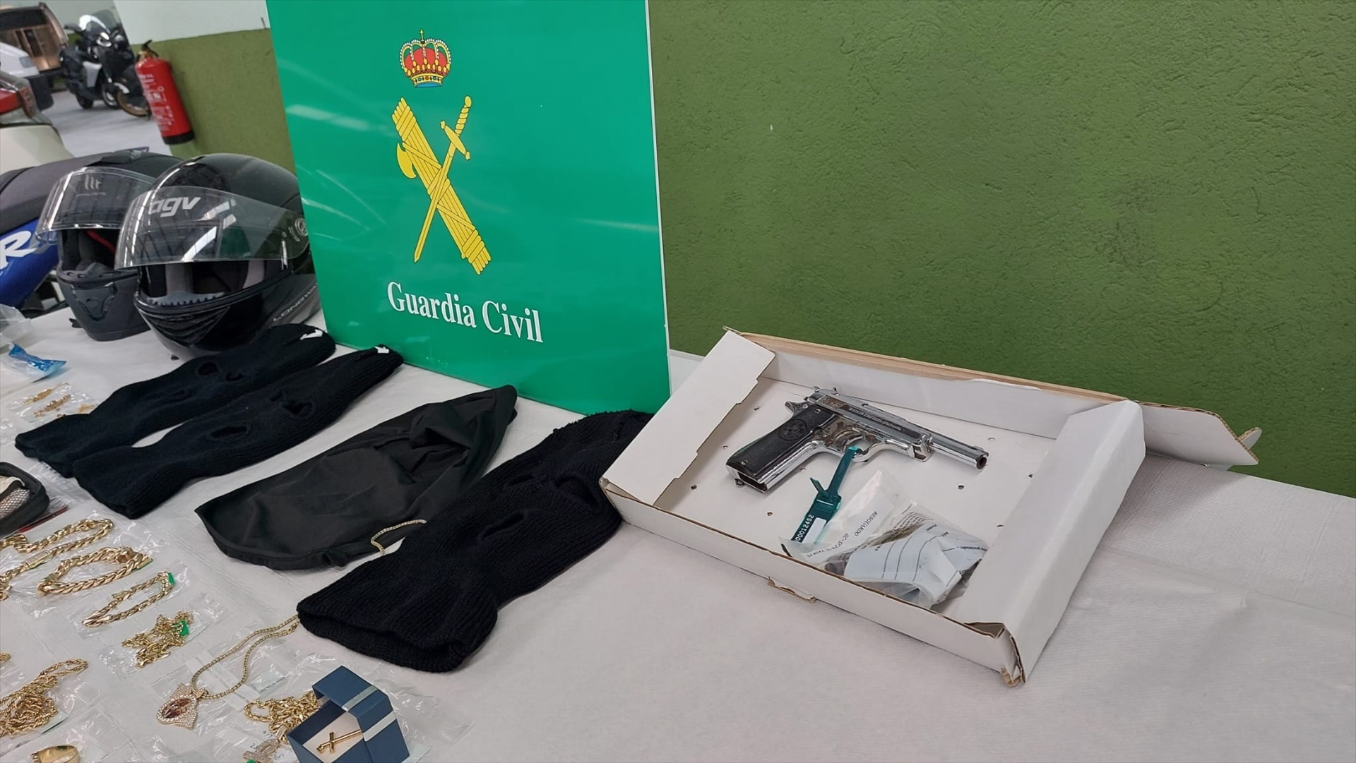 La Guardia Civil se ha incautado, en el marco de la operación contra delitos de robo con violencia desarrollada entre Galicia y Cataluña, de una pistola de fuego, joyas por valor de 100.000 euros, dinero en efectivo y 650 gramos de cocaína, entre otros objetos.