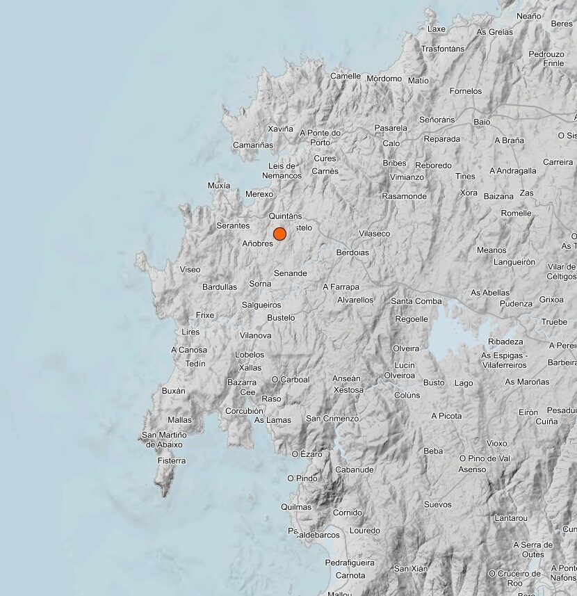 En concreto, según los datos del Instituto Geográfico Nacional, el temblor ha tenido lugar a las 6,38 horas de la mañana en un área rodeada por las aldeas de Quintáns, Cebráns, Fumiñeo y Castelo, a solo un kilómetro de profundidad.