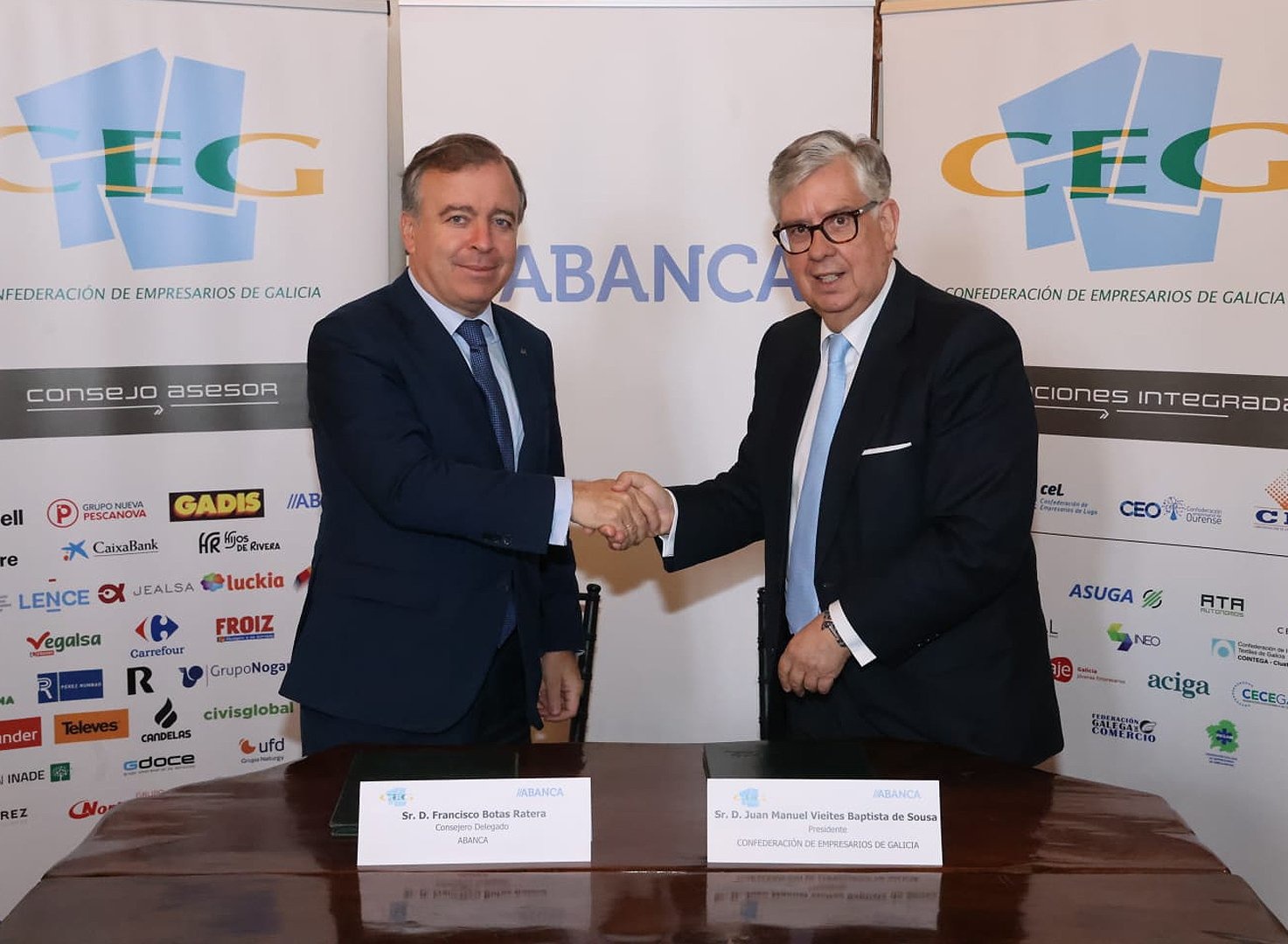 El acuerdo ha sido firmado esta mañana de miércoles en Santiago de Compostela entre el consejero delegado de Abanca, Francisco Botas, y el presidente de la CEG, Juan Manuel Vieites.