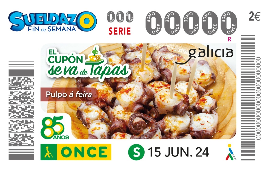 Por este motivo, tal y como ha destacado la ONCE en un comunicado, cinco millones de cupones llevarán por toda España ese plato básico de la gastronomía de Galicia.