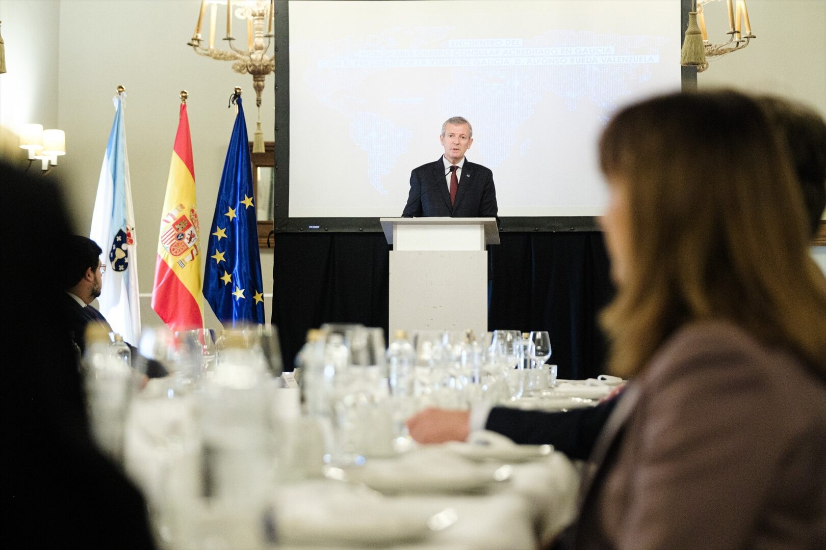 El presidente autonómico ha agradecido al cuerpo consultar su papel a la hora de facilitar las relaciones bilaterales y económicas de Galicia con otros países y apoyar a los gallegos en todo el mundo, tanto los que están establecidos en el extranjero como los que quieren retornar su tierra.