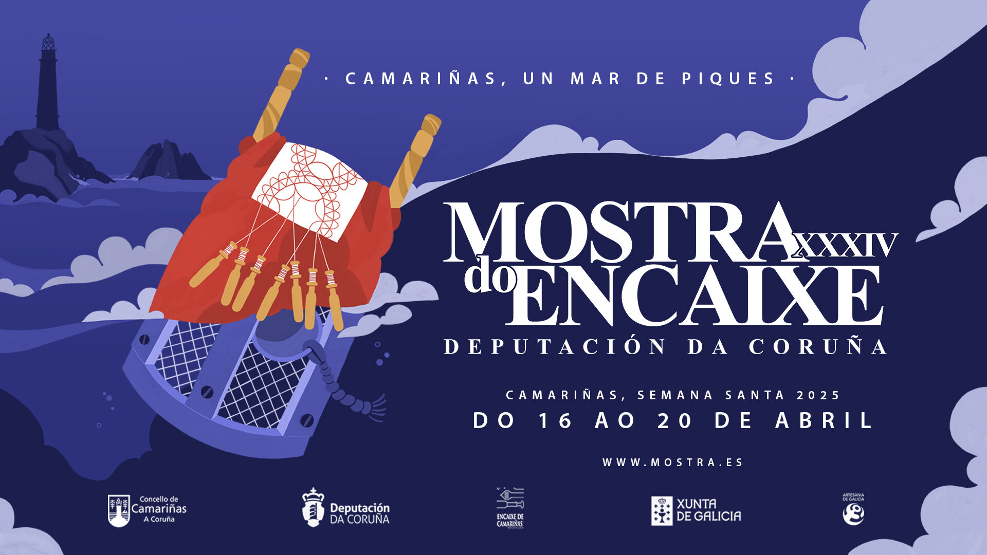 La XXXIV Muestra del Encaje de Camariñas Deputación da Coruña se celebra desde el miércoles 16 al domingo 20 de Abril, coincidiendo con la Semana Santa.