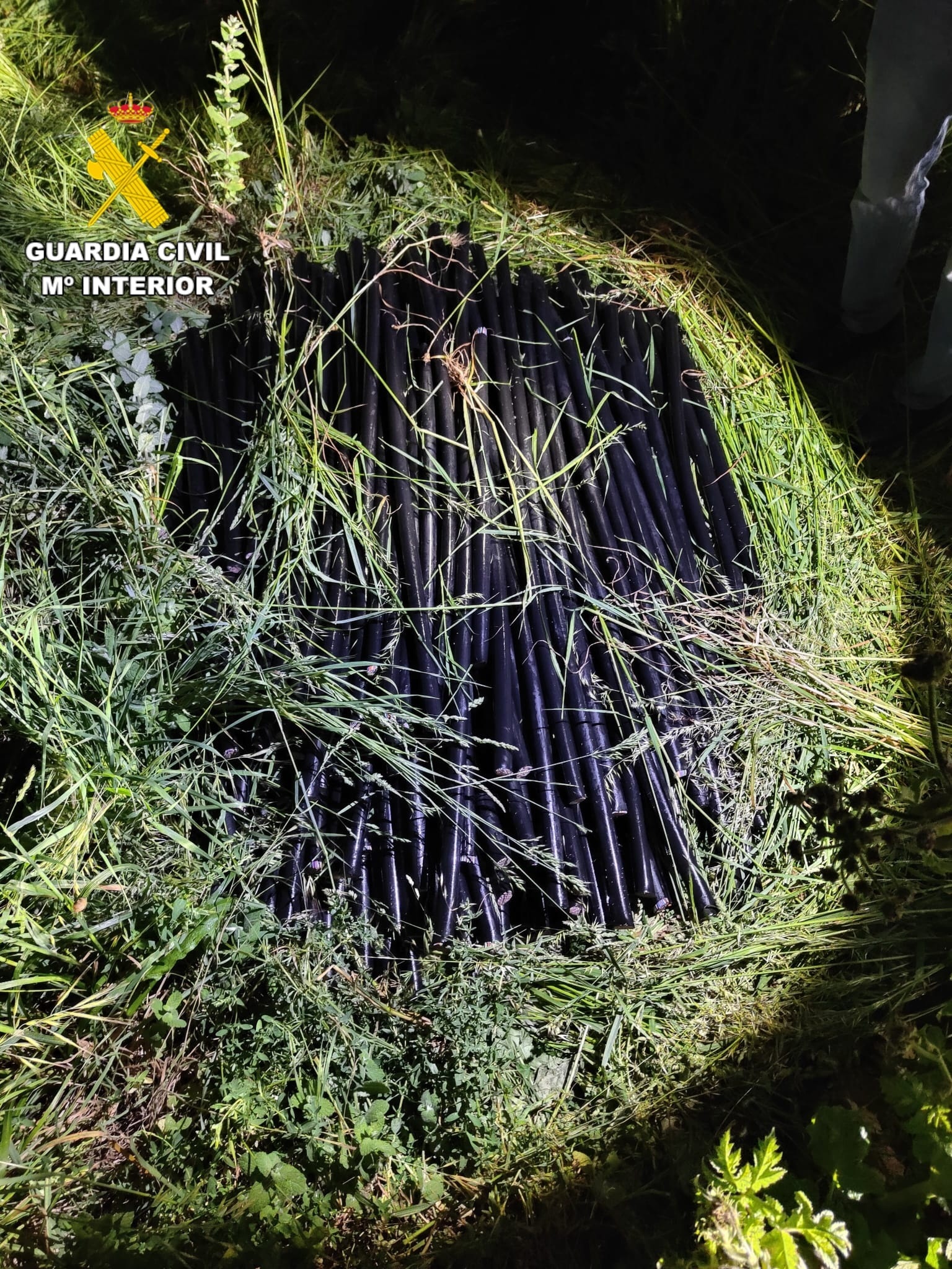 Al día siguiente, se constató la falta de cableado en un tramo de red, así como la localización de dos grandes apilamientos de cable seccionado, de aproximadamente 2.000 metros lineales, ocultos entre la vegetación.