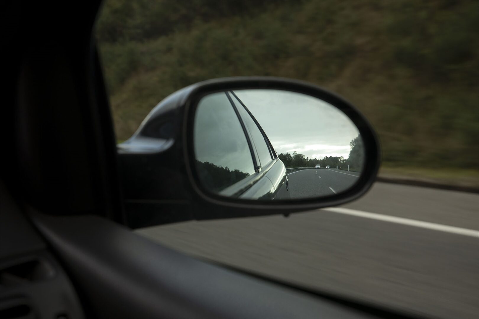 Coche, retrovisor, carretera. | ANA VARELA