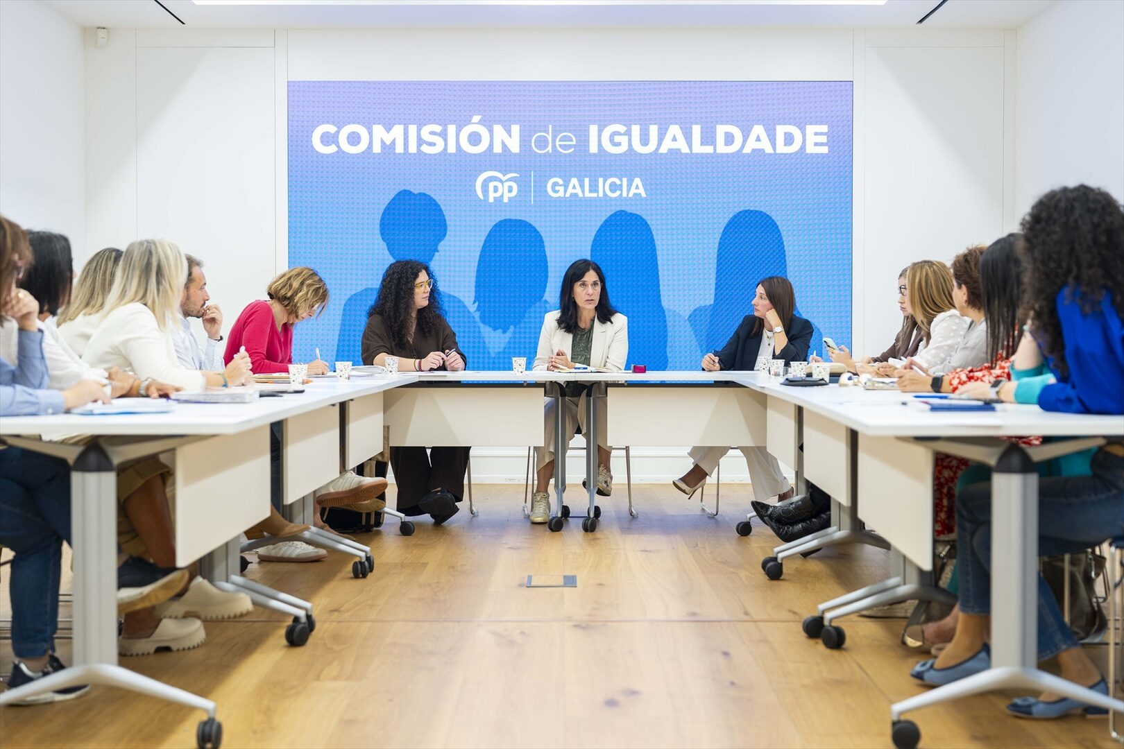 La secretaria xeral del PPdeG, Paula Prado, la responsable de Promoción da Igualdade en el Gobierno gallego, María Quintiana; y la coordinadora de la Comisión de Igualdade del partido, Raquel Touriño, han reunido este lunes a la comisión, en la víspera del Día Internacional contra la Explotación Sexual y la Trata de Personas.