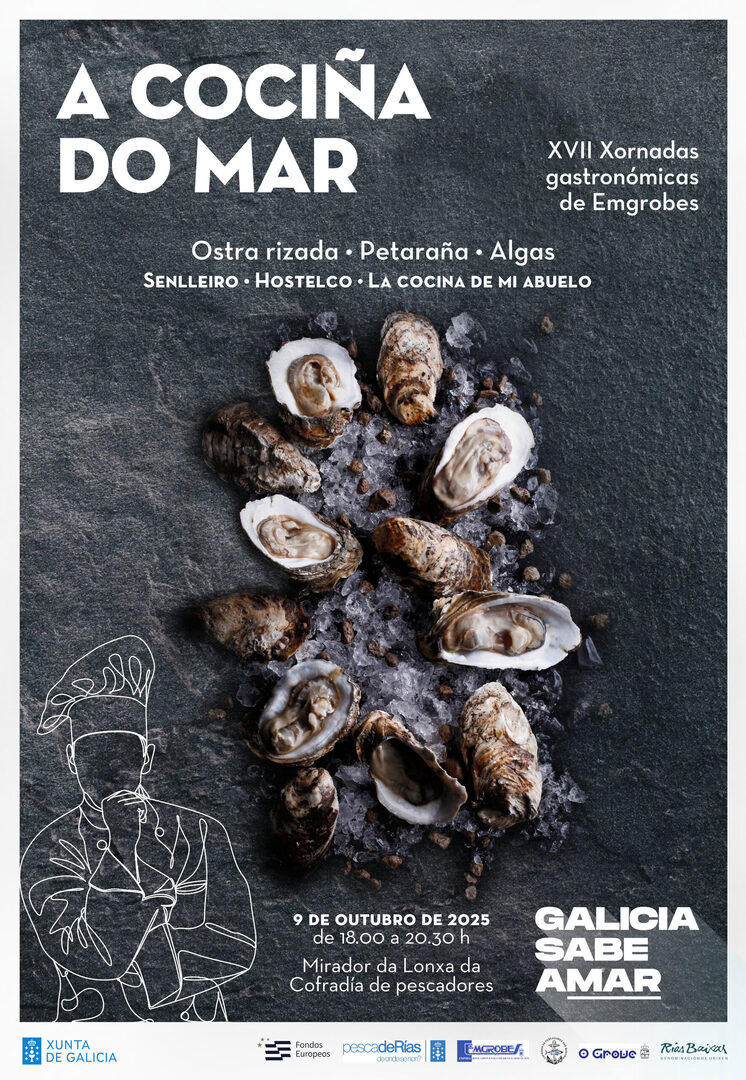 Dentro de las actividades cabe destacar la XVII Xornadas gastronómicas de Emgrobes que se celebrará el próximo jueves 9 de octubre en el mirador de la Lonja de O Grove. A Cociña do mar trae como protagonistas las algas, la ostra rizada y la pitraña.