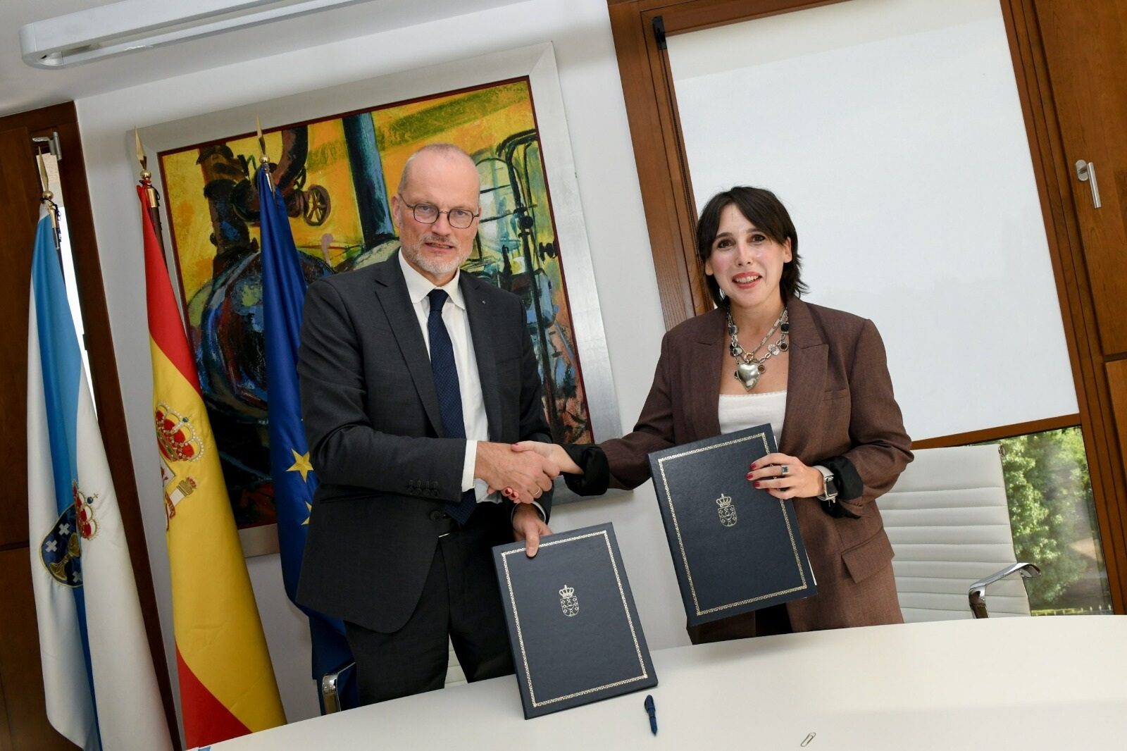 La conselleira de Economía e Industria, María Jesús Lorenzana, ha firmado un memorándum de cooperación con el director ejecutivo de la empresa común Sesar JU (Single European Sky ATM Research Joint Undertaking), Andreas Boschen. Se trata de una asociación público-privada europea que tiene como objetivo modernizar la gestión del tráfico aéreo en Europa, a través del impulso al concepto de "cielo digital europeo".
