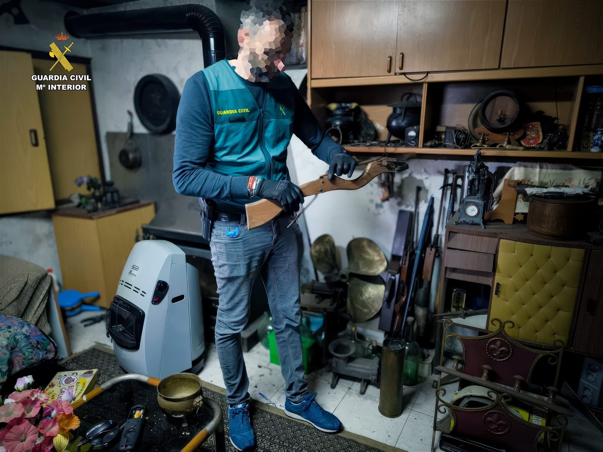Tras las detenciones, el registro en el domicilio de A Laracha localizó: un revólver del calibre 36 (sin número de serie y en avanzado estado de oxidación); varias ballestas y carabinas de aire comprimido; así como una importante cantidad de material relacionado con los robos: herramientas, enseres y objetos de diversa índole.