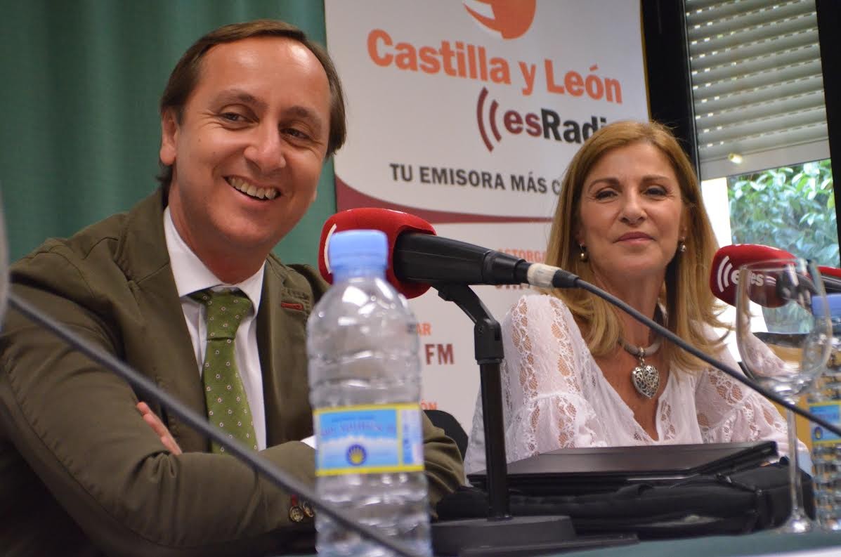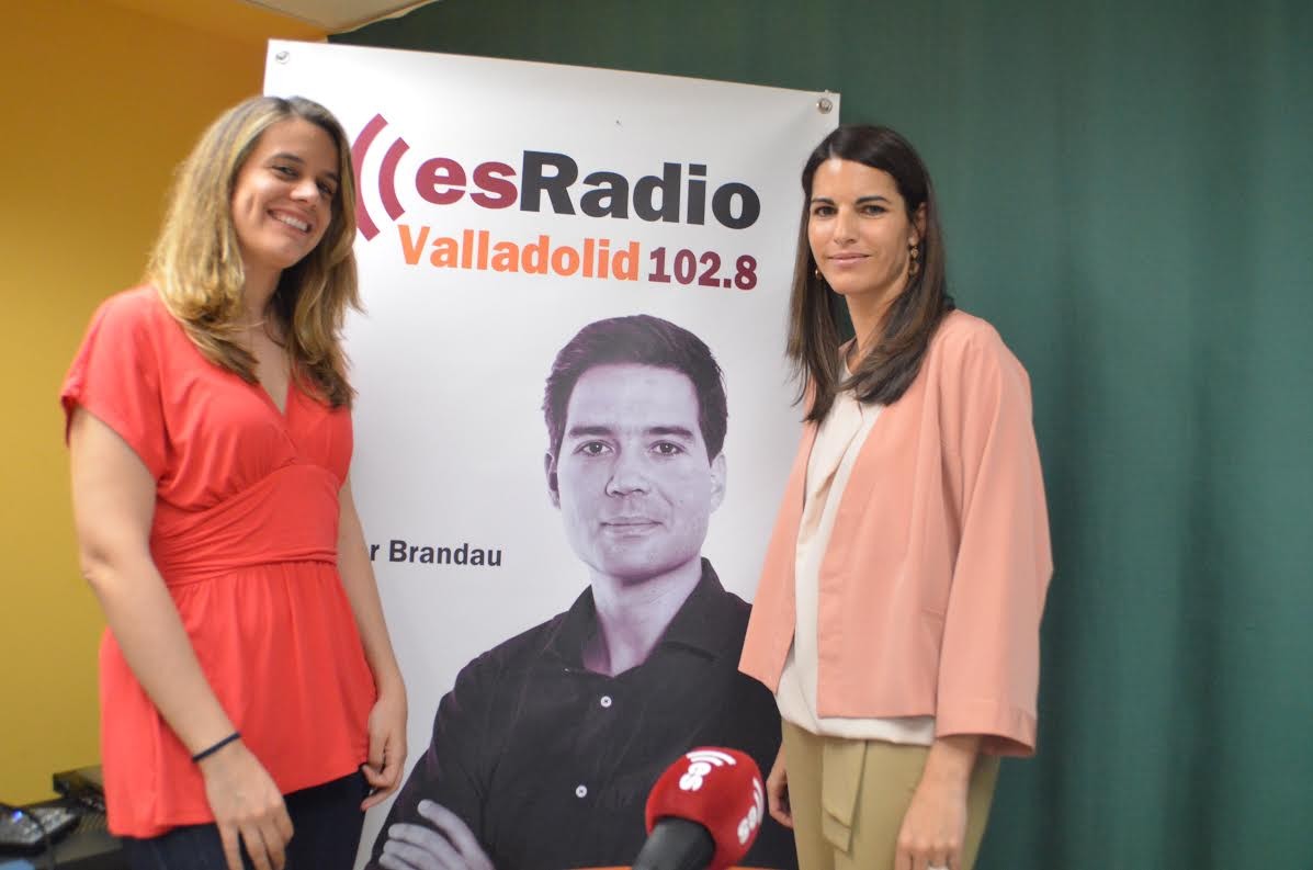 Marta Cotarelo y Nieves López Gamonal junto al cartel de "esRadio en Valladolid".