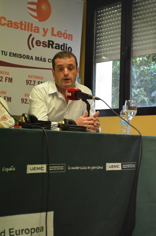 Dieter Brandau, en un momento de la emisión de 'Fútbol es Radio' desde el salón de grado de la Universidad Europea Miguel de Cervantes de Valladolid.