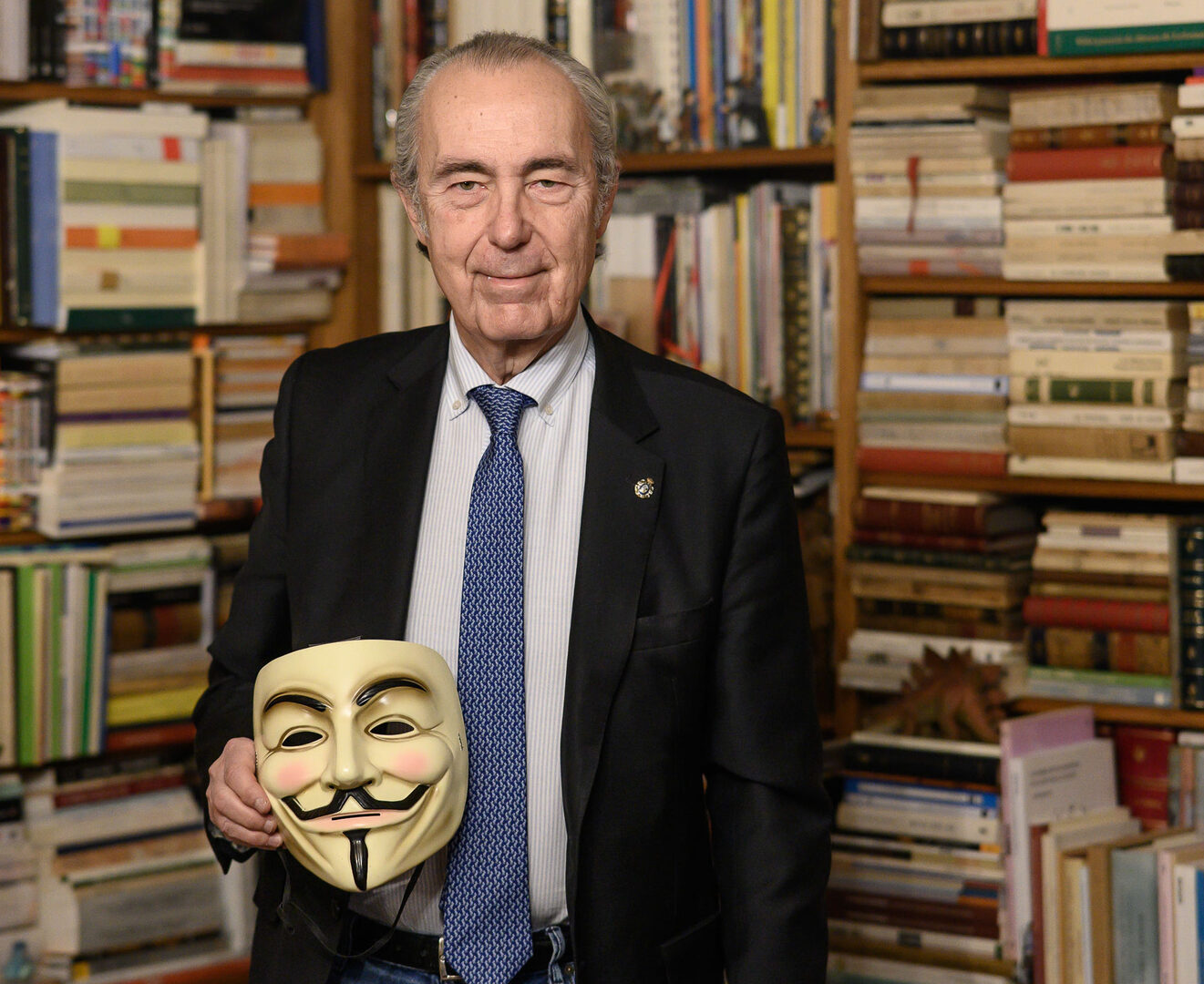 Luis Alberto de Cuenca, posando para Libertad Digital con una máscara. | C.Jordá