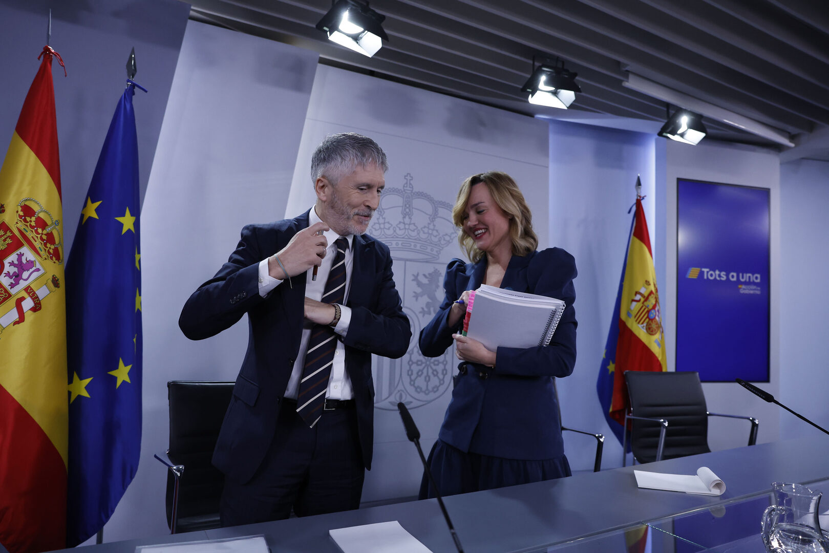 MADRID (ESPAÑA), 14/01/2025.- El ministro del Interior Fernando Grande-Marlaska (i) y la ministra de Educación Pilar Alegría (d) durante la rueda de prensa tras el Consejo de Ministros celebrado este martes en La Moncloa, Madrid. EFE/ Javier Lizón | EFE