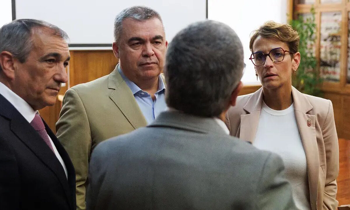 Santos Cerdán, María Chivite y su tío, Óscar Chivite, en una reunión en el Ministerio de Transición Ecológica en mayo de 2024. | EFE
