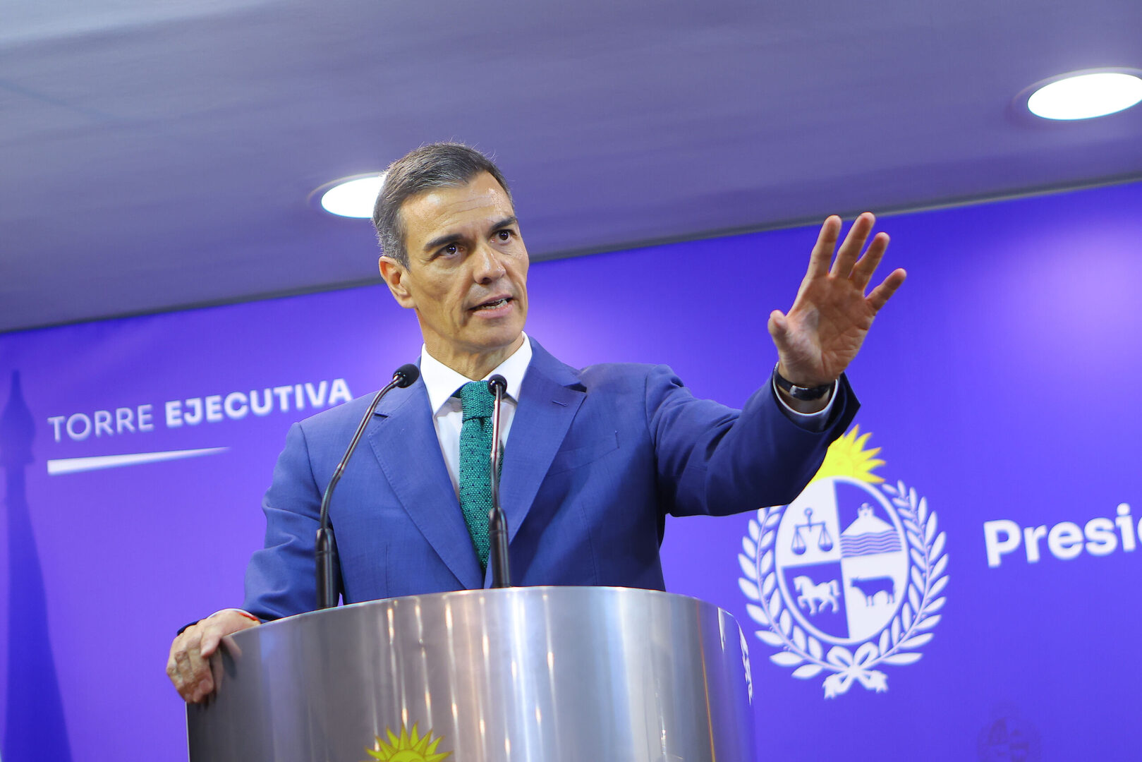 Pedro Sánchez, habla en la rueda de prensa que ha ofrecido en Montevideo. | EFE/Gaston Britos