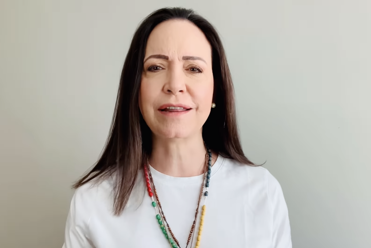 La líder opositora venezolana, María Corina Machado, durante su intervención tras el golpe de Estado de Nicolás Maduro. | María Corina Machado