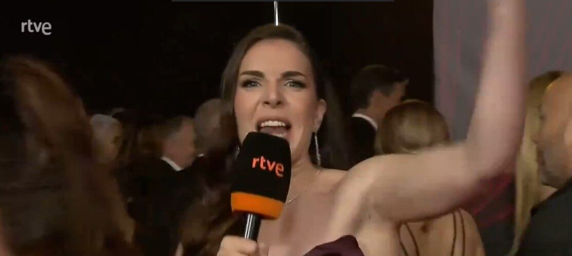 Inés Hernand, celebrando a Pedro Sánchez en los Goya. | Imagen de vídeo