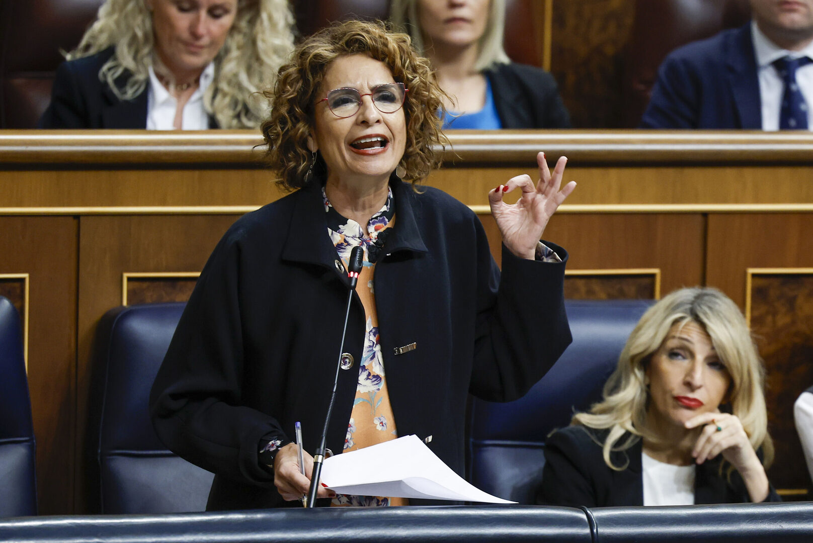 La vicepresidenta primera del Ejecutivo y ministra de Hacienda, María Jesús Montero, interviene durante su intervención en la sesión de control al Gobierno celebrada este miércoles en el Congreso. | EFE
