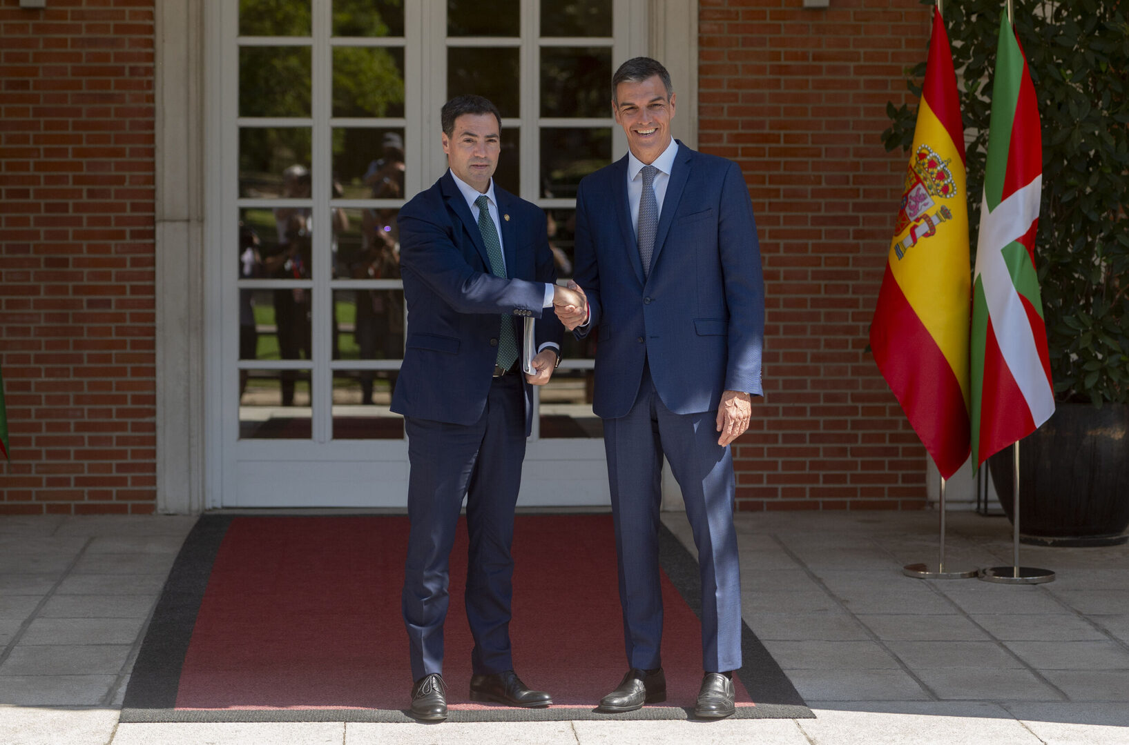 El lehendakari, Imanol Pradales, y el presidente del Gobierno, Pedro Sánchez. | Alberto Ortega / Europa Press