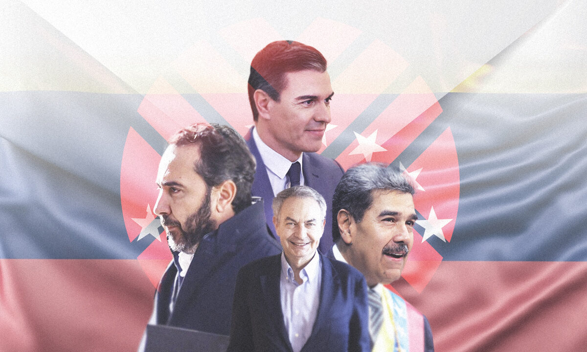 Pedro Sánchez, Víctor de Aldama, José Luis Rodríguez Zapatero y Nicolás Maduro. | Libertad Digital.