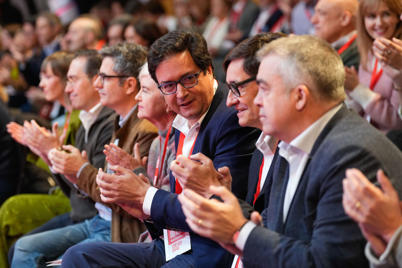 V arios ministros del Gobierno y dirigentes socialistas apoyan al secretario general del PSOE-M, Óscar López (3d), a 1 de febrero de 2025. EFE/Borja Sánchez-Trillo. | EFE