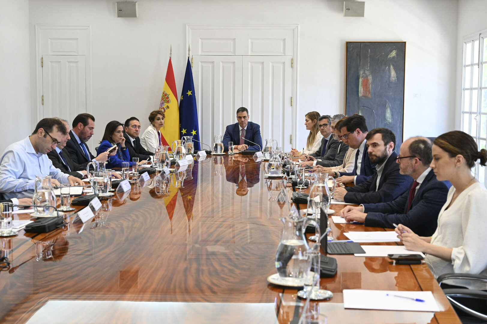 MADRID, 28/04/2025.- El presidente del Gobierno, Pedro Sánchez (c), en la reunión del Consejo de Seguridad Nacional este lunes, en Madrid, con motivo del apagón eléctrico que sufre el país. EFE/ Borja Puig De La Bellacasa Pool Moncloa SOLO USO EDITORIAL SOLO DISPONIBLE PARA ILUSTRAR LA NOTICIA QUE ACOMPAÑA (CRÉDITO OBLIGATORIO) | EFE